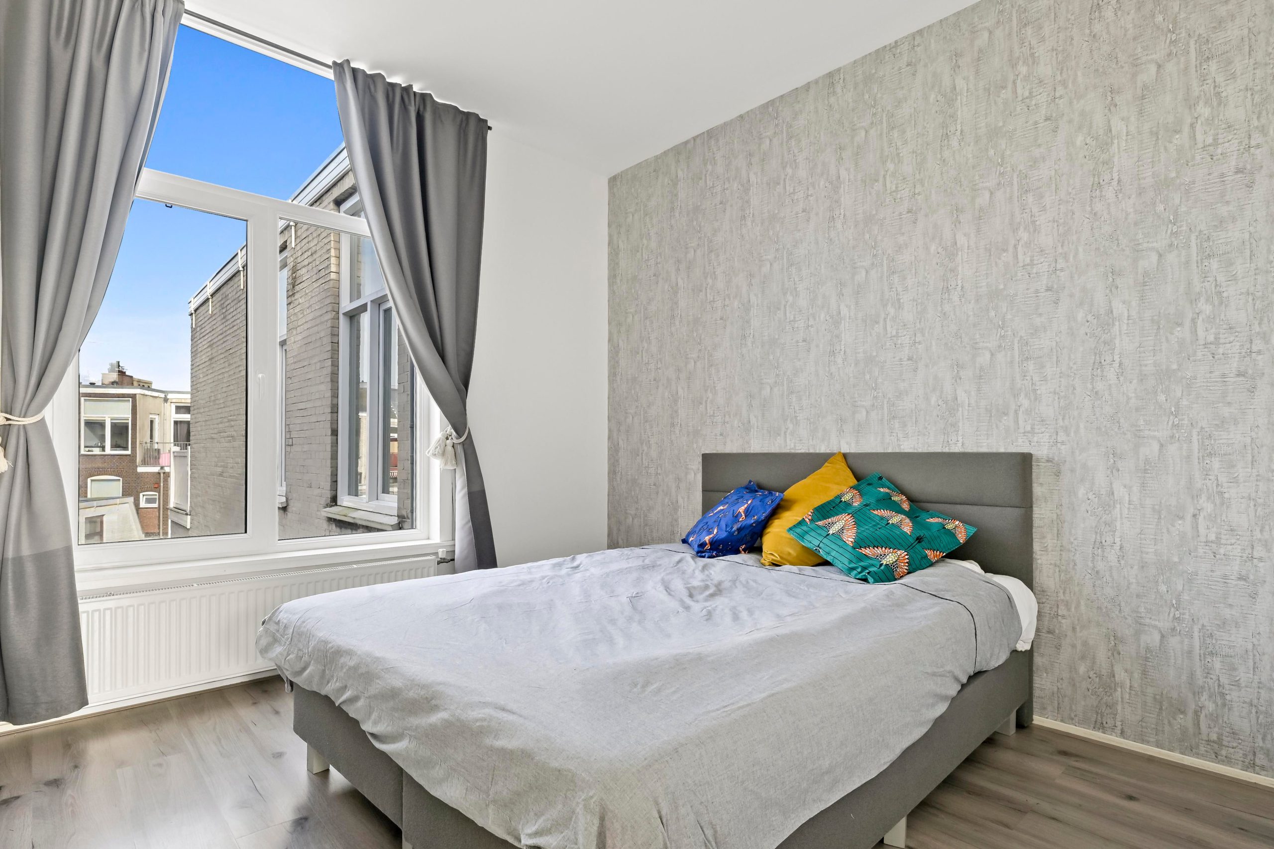 Open ‘Haags’ portiek met brede trap naar de eerste etage. Entree appartement, hal met meterkast en binnentrap naar de topetage met lichtkoepel. Ruime lichte overloop met bergkast met wasmachineaansluiting. Toegang tot toilet, woon-eetkamer, moderne badkamer (welke is voorzien van een douche, wastafelmeubel en spiegel). Toegang tot de L-vorm woon/eetkamer met zeer veel daglichttoetreding mede dankzij de authentieke erker. Via de woonkamer toegang tot de slaapkamer (3.40 x 3.62). De keuken is aan de rechterzijde van het appartement gelegen en is voorzien van een aansluiting voor een vaatwasser, oven, 4-pits gasfornuis, koel-vries combinatie. Ruime tweede slaapkamer gelegen aan de achterzijde met toegang tot het balkon. Tot slot is het gehele appartement voorzien van een laminaatvloer.