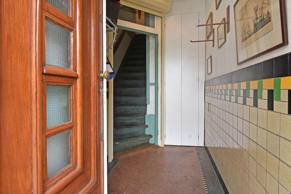 Entree vanaf straatniveau, ruime hal met leuke details zoals de oorspronkelijke wandtegels en granito vloer, ruimte voor fietsen, garderobe, meterkast, tochtportaal, binnentrap naar de eerste verdieping met overloop, toiletruimte, vergrote moderne badkamer met hoekbad met whirlpool, afzonderlijke douche, wastafelmeubel en designradiator. ruime voorslaapkamer, woonkamer-en-suite d.m.v. kastenseparatie en schuifdeuren met glas in lood met de eetkamer met open haard en bijgetrokken balkon, half open keuken met diverse inbouwapparatuur, achterzijkamer met stook/waskast waarin Remeha-combiketel 2019 en wasmachine-/drogeraansluiting. Deze ruimte zou na een cosmetische ingreep kunnen worden getransformeerd naar een tweede slaap-of werkkamer.