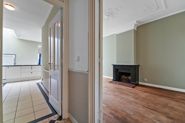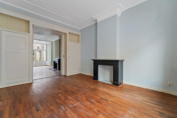 Prachtige authentieke details aanwezig zoals ornamenten plafonds, originele schouwen en de schuifseparatie