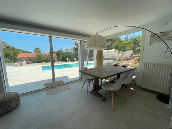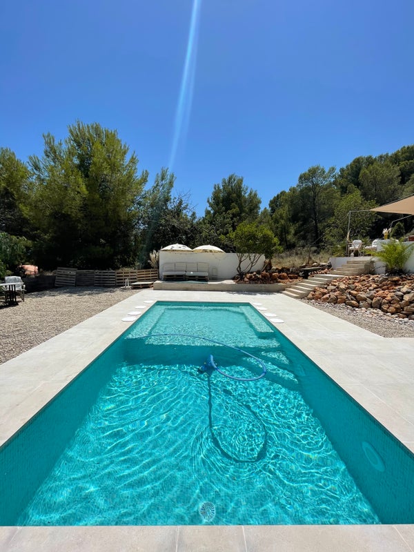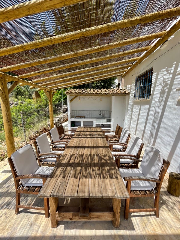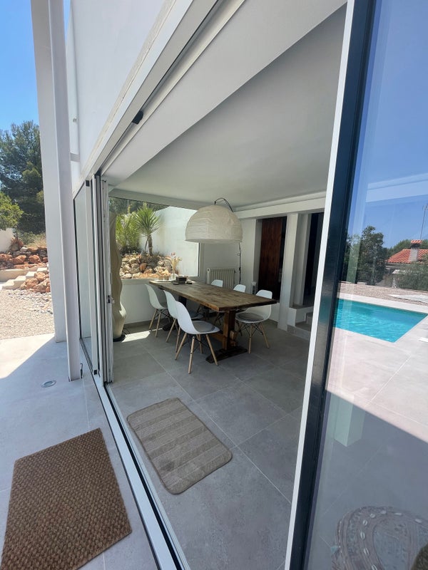 De keuken is volledig uitgerust met een vaatwasser, magnetron en een extra buitenvriezer voor de warme zomerdagen. In de winter heeft het huis een ecologische houthaard en centrale verwarming in elke (slaap)kamer. De villa is gelegen in het rustige natuurpark ‘La Renega’ waar we gebruik maken van septic tanks en waterwinning, waardoor het een uiterst MILIEUVRIENDELIJK huis is.