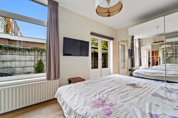In the most beautiful part of COPERNICUSSTRAAT, around the corner from Regentesselaan, you find this GROUND FLOOR appartment (approx. 101m2) with single rear extension, 2 bedrooms, sunny GARDEN on the northwest, semi-open kitchen with bar and luxurious bathroom (December 2022).