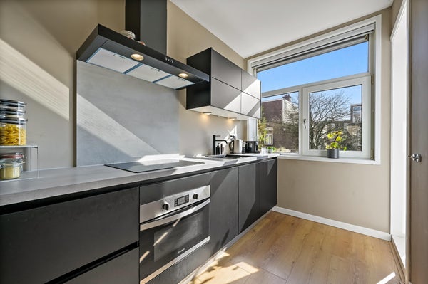 Indeling: open Haags portiek met trap naar de eerste etage. Entree woning, gang met toegang tot alle vertrekken en voorzien van vaste kast met opbergruimte. Ruime woon-/eetkamer gelegen aan de voorzijde van de woning met toegang tot de hoofdslaapkamer gelegen aan de achterzijde. Via openslaande deuren toegang tot het heerlijk zonnige balkon gelegen op het zuidoosten. Moderne zwarte keuken (2021) voorzien van diverse inbouwapparatuur zoals koel-/vriescombinatie, combimagnetron, inductiekookplaat, vaatwasser, inbouw-wasdroogcombinatie, opstelplaats van de CV-ketel en wederom toegang tot het balkon. Tweede slaap/werkkamer gelegen aan de achterzijde. Badkamer (2022) voorzien van toilet, inloopdouche, wastafel en handdoekradiator. Derde slaapkamer gelegen aan de voorzijde. De gehele woning is voorzien van een prachtige laminaat vloer en HR+ glas in kunststof kozijnen.