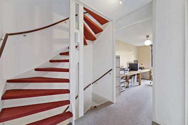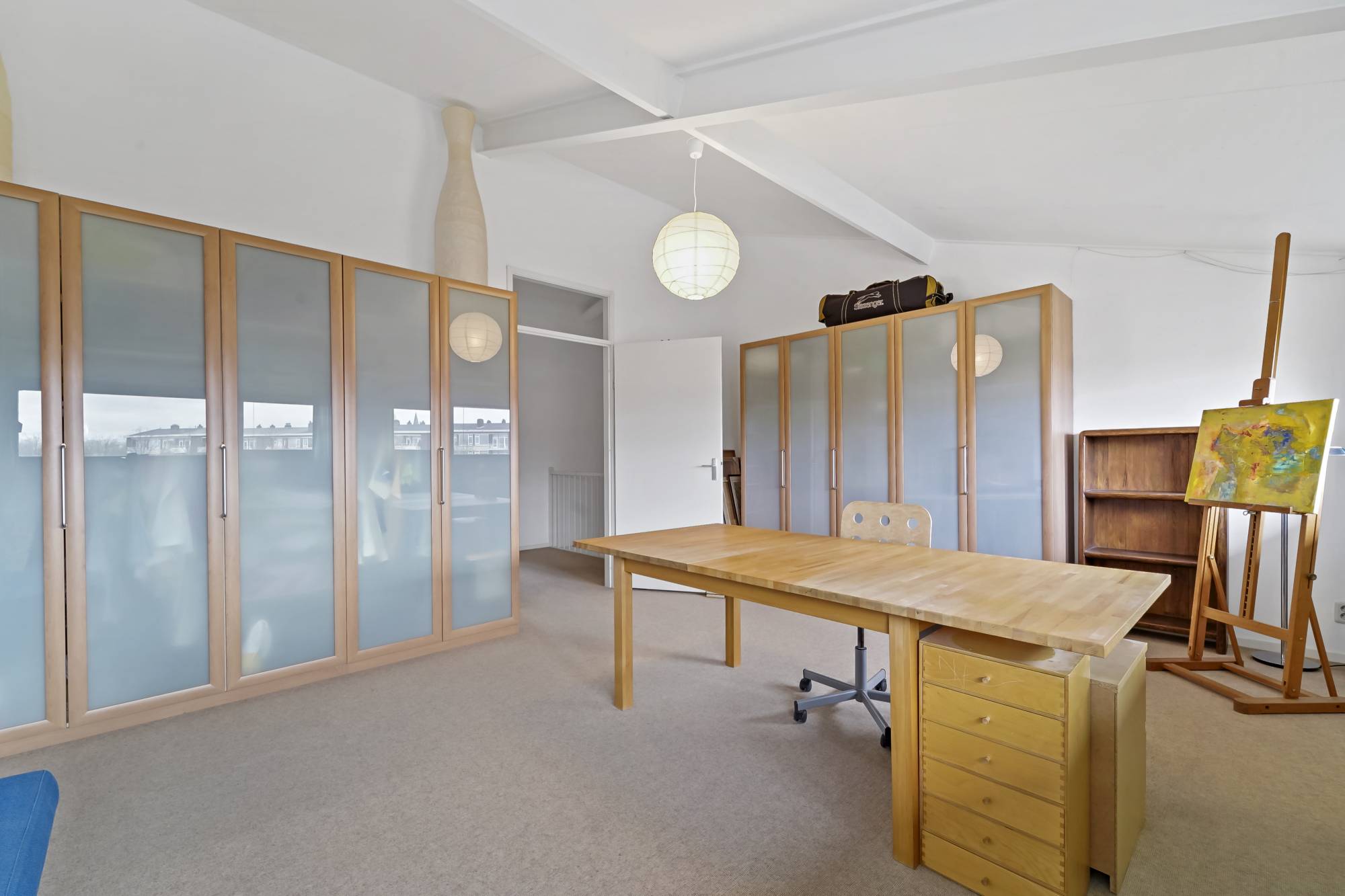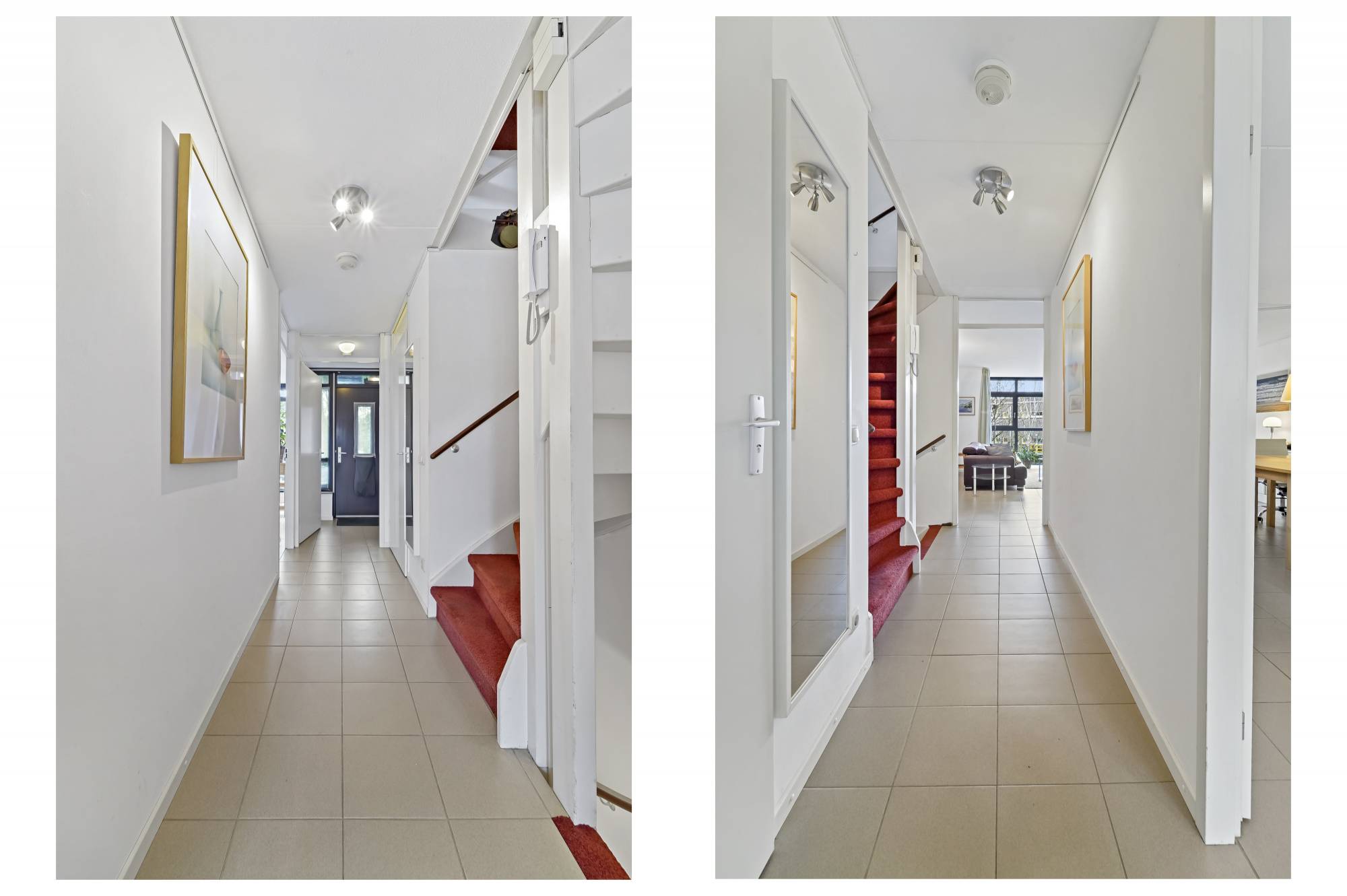 De woning heeft vier verdiepingen en een bijzondere indeling. Bij binnenkomst wordt u verwelkomd door een ruime hal met toegang naar het toilet met fontein. Ruime woon-eetkamer met open woonkeuken, vol met natuurlijk licht dat door de grote ramen stroomt. Vanuit de gang toegang naar de benedenverdieping welke uitermate geschikt is voor een thuiskantoor of praktijk. Heerlijke tuin gelegen op het zuidoosten met ochtend- en middagzon en een ruime betegelde berging voorzien van stroom. Vanuit de tuin toegang tot het achtergelegen parkeerterrein met eigen parkeerplaats.