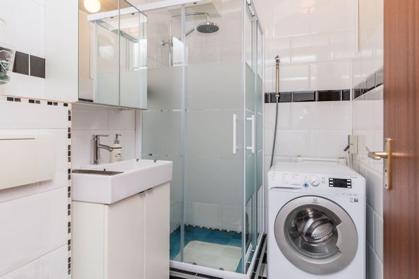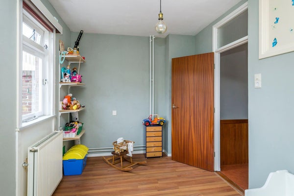 Op de eerste verdieping vind je twee ruime slaapkamers en de badkamer. De slaapkamer aan de achterzijde geeft toegang tot een balkon op het zuidoosten, waar je ’s ochtends heerlijk van de zon kunt genieten. De badkamer is voorzien van een moderne douche, een wastafel, een toilet en een wasmachineaansluiting; compact en compleet. De tweede slaapkamer is perfect als kinderkamer, gastenkamer of thuiswerkplek (of een combinatie).