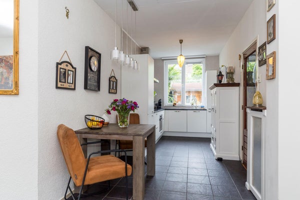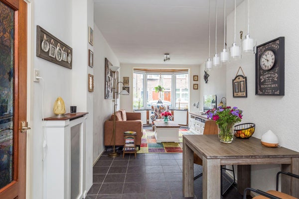 De indeling is als volgt; Loop door de voortuin, die ruim genoeg is voor het stallen van fietsen, en stap binnen via de voordeur op de begane grond in de hal en vervolgens de gang. Hier zijn het toilet, de meterkast en bergruimte. Vanuit de hal bereik je de woonkamer met een leuke erker. De woonkamer geeft veel daglicht en biedt een warme en uitnodigende sfeer. De keuken aan de achterzijde is voorzien van moderne inbouwapparatuur zoals een inductieplaat, maakt het koken een waar genot. Vanuit de keuken stap je zo de tuin in, die ideaal is voor zomerse barbecues en ontspannende momenten in de zon. Achter in de tuin is er een schuurtje met overkapping.