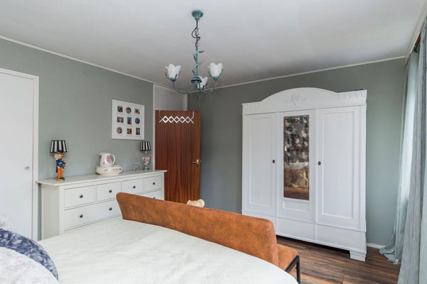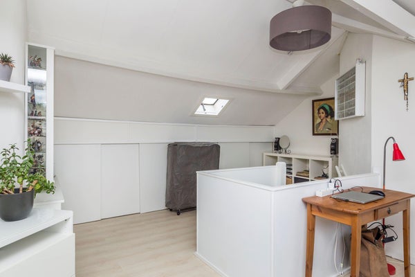 De tweede verdieping herbergt een derde grote slaapkamer en biedt veel bergruimte. Deze extra kamer is veelzijdig in te richten en kan dienen als slaapkamer, hobbyruimte of kantoor. Door de grote dakkapel is er veel daglicht en ruimte gecreëerd.