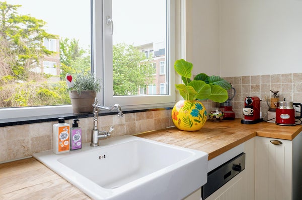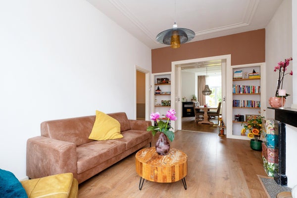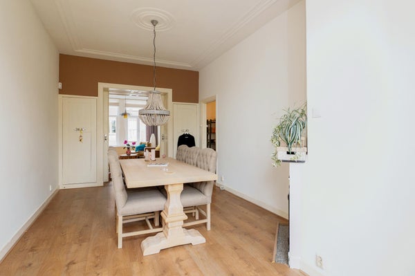 VERY CHARMING and SPACIOUS (104 m2!!) 5-room apartment with attractive AUTHENTIC DETAILS located on the first floor around the corner from the cozy Fahrenheitstraat. The house is characterized by high ceilings with large windows with lots of light, ceilings with decorative elements, beautiful ensuite separation and a BALCONY on the west!