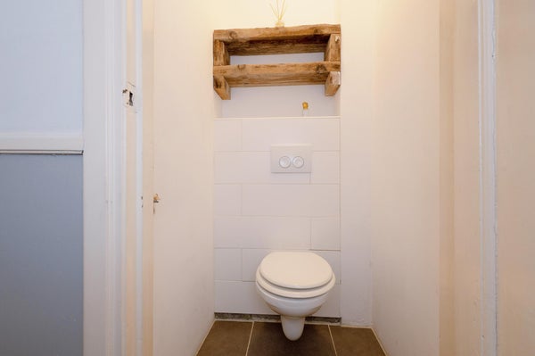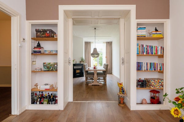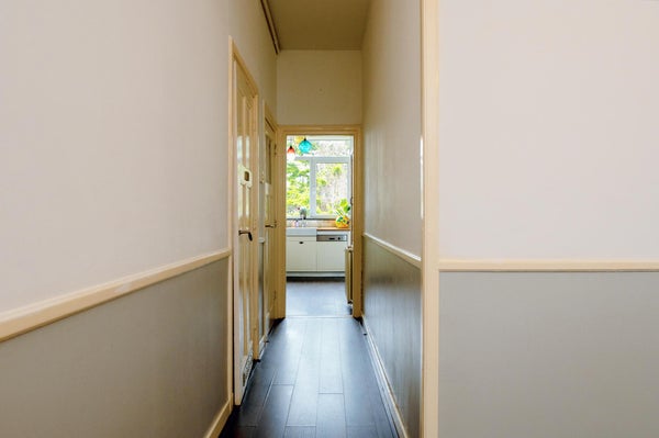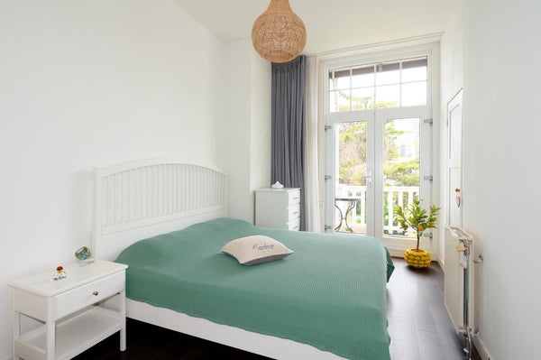 Open ‘Hague’ porch with wide stairs to the first floor. Entrance of the house, very spacious hall with access to all rooms. Living-dining room ensuite with beautiful ceilings, sliding doors with fixed storage cupboards. Kitchen located at the rear with a beautiful gas stove with 5 burners and a large oven, dishwasher, fridge/freezer and central heating installation (2023). Master bedroom located at the rear with access to the lovely balcony. Second spacious bedroom located at the front. Third (study) room located at the front with washing machine connection. In the hallway there is a separate toilet and a shower room. The house has plastic frames with double glazing.