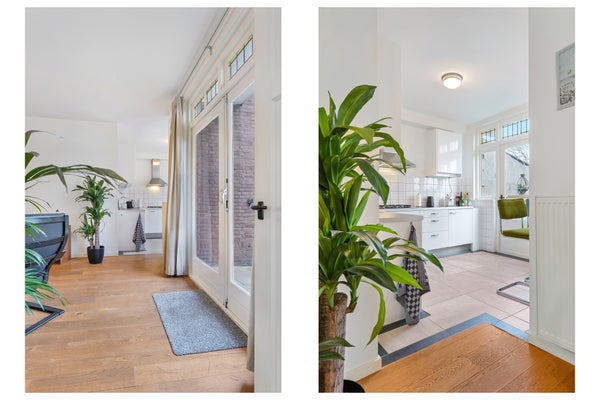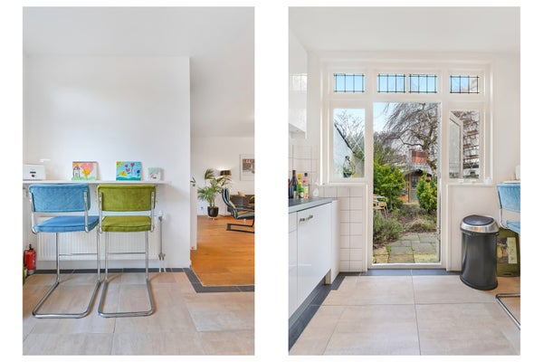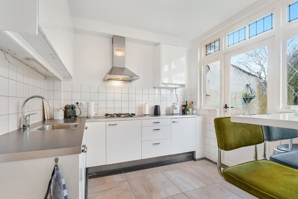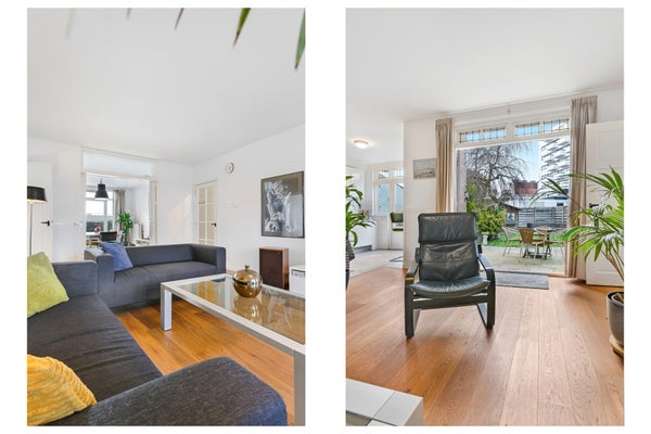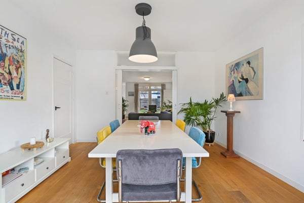 Layout: Entrance at street level through a closed porch. Entrance house. Corridor with toilet with fountain and storage cupboard with washing machine connection. Atmospheric living-dining room en suite with patio doors to the outside at both the front and rear, which provides a lot of light. Living room at the rear with patio doors to the very spacious garden where you can enjoy the sun all day long. Semi-open kitchen with various (built-in) equipment such as a 4-burner gas stove, oven, refrigerator, freezer and dishwasher. Dining room located at the front with patio doors to the front garden with driveway. Two spacious bedrooms located in the side extension. From the hallway access to the bathroom with bath, shower and sink. The entire house has a beautiful wooden floor. The spacious basement can be reached from the hallway (standing height). An ideal storage!