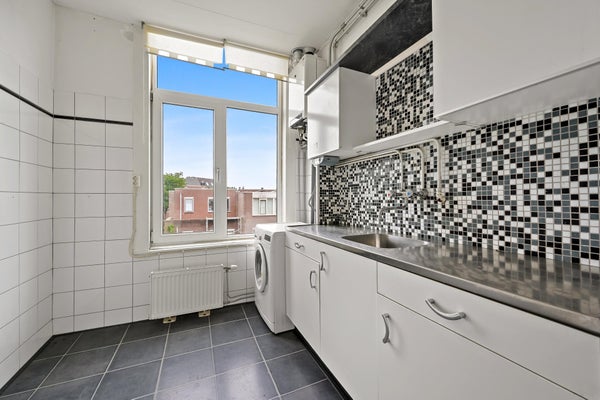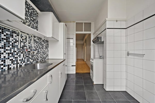 Layout: open ‘Haags porch’ with stairs to the first floor. Front door apartment, hall with meter cupboard, wardrobe and storage space under the stairs. Stairs to the second floor. Very spacious and bright landing with access to all rooms. Front and back room (former ensuite) with lots of light thanks to the large window frames. Bathroom with a bath, shower and double sink. Kitchen at the rear with gas hob, sink and washing machine (connection). Spacious bedroom located at the rear with a shower and sink. Second spacious bedroom located at the front.