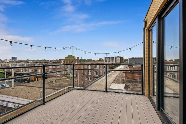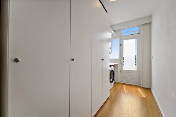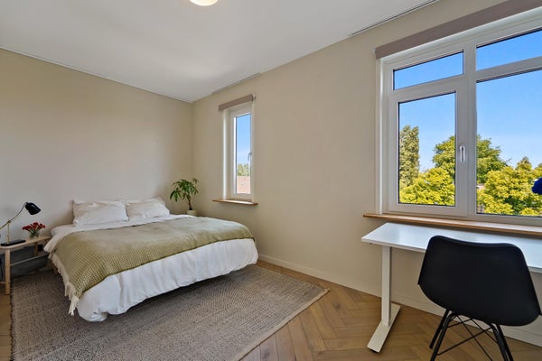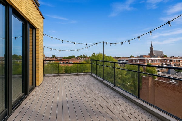Layout: closed porch with stairs to the second floor. Entrance house with wardrobe, meter cupboard, toilet with washbasin and access to all rooms. Spacious and very bright L-shaped living/dining room with lots of light and sliding separation. Modern open kitchen located at the rear with gas hob, extractor hood, oven and dishwasher. Through patio doors access to the lovely balcony located on the southwest and equipped with balcony cupboard. Back in the hallway, access to the first spacious bedroom and the second bedroom / laundry room with both again access to the balcony. Stairs to the second floor, spacious landing with sliding doors to the fantastic roof terrace where you can enjoy the sun and the view all day long! Master bedroom with again access to the roof terrace. Luxurious bathroom with a double walk-in shower, double sink, underfloor heating and toilet. Two very spacious bedrooms located at the front with unobstructed views over the Goudsbloemlaan. The entire second floor has underfloor heating and a beautiful PVC herringbone floor!