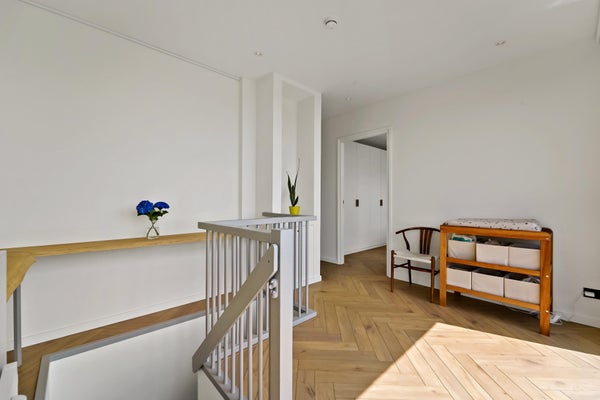 The house of no less than 141m² living space has 4 very spacious bedrooms, a luxurious bathroom, a lovely balcony facing southwest, a big terrace of ca. 27m2 and a (bicycle) shed at street level!