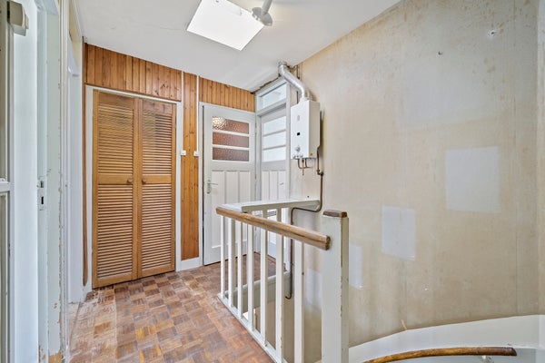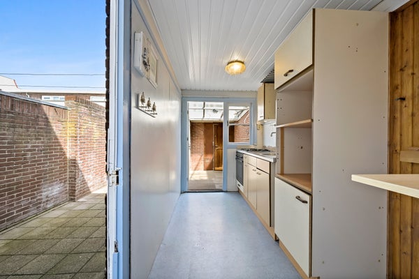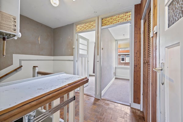 Layout: Entrance house. Corridor with meter cupboard and access to the front room, living/dining room and stairs to the first floor. The cozy living/dining room still has original stained glass windows and gives access to the cellar. Kitchen in the rear extension with access to the garden located on the northeast where you can enjoy the morning and afternoon sun, pantry and the spacious storage / bicycle shed. The house has a closed back entrance which is accessible from both Westduinweg and Scholstraat. Stairs to the first floor. Landing with shower room and toilet. Master bedroom located at the front and two bedrooms at the rear.