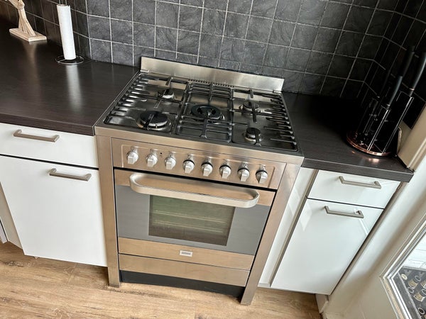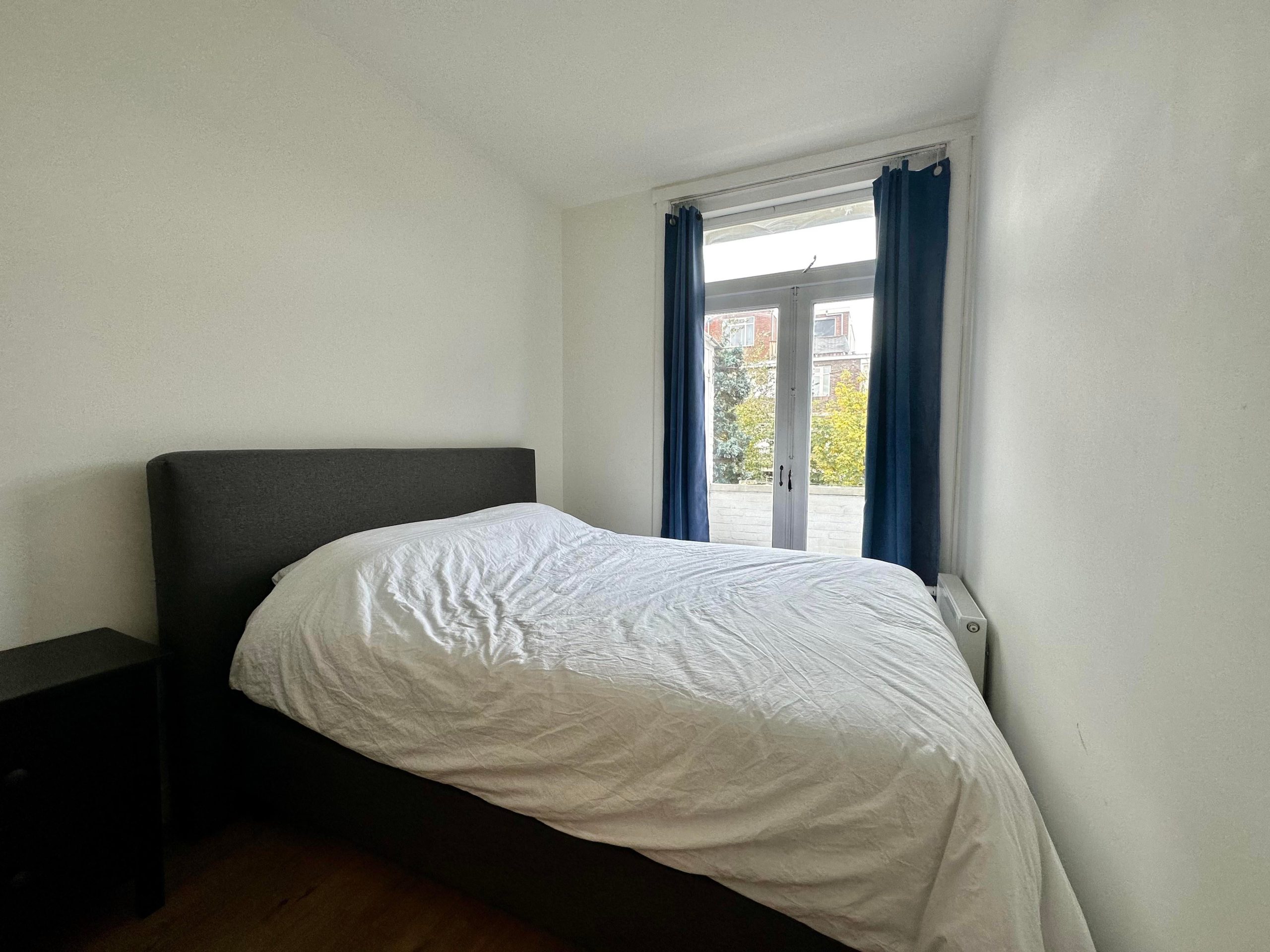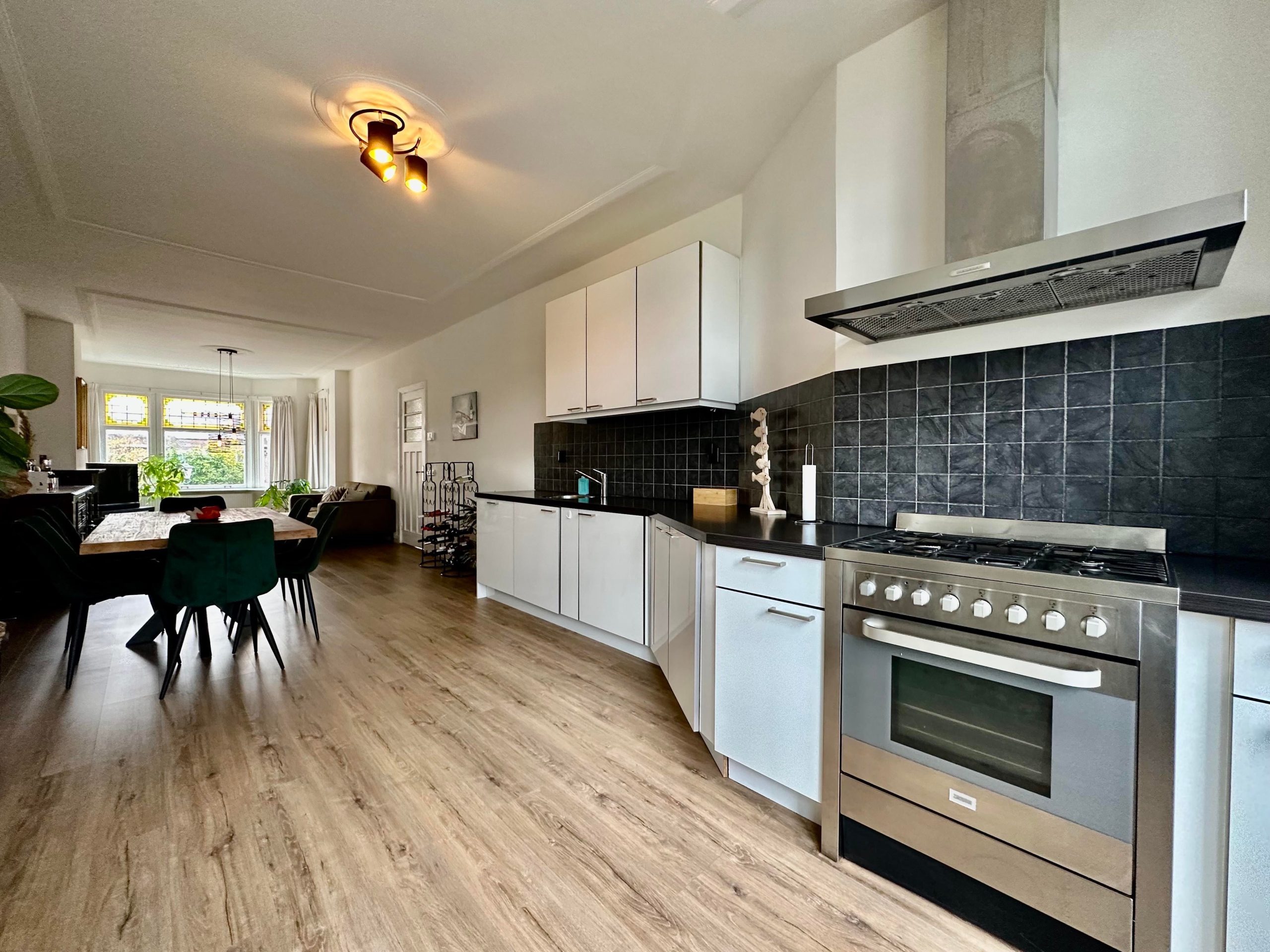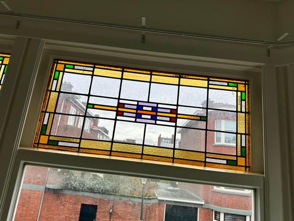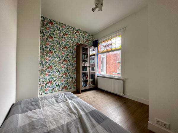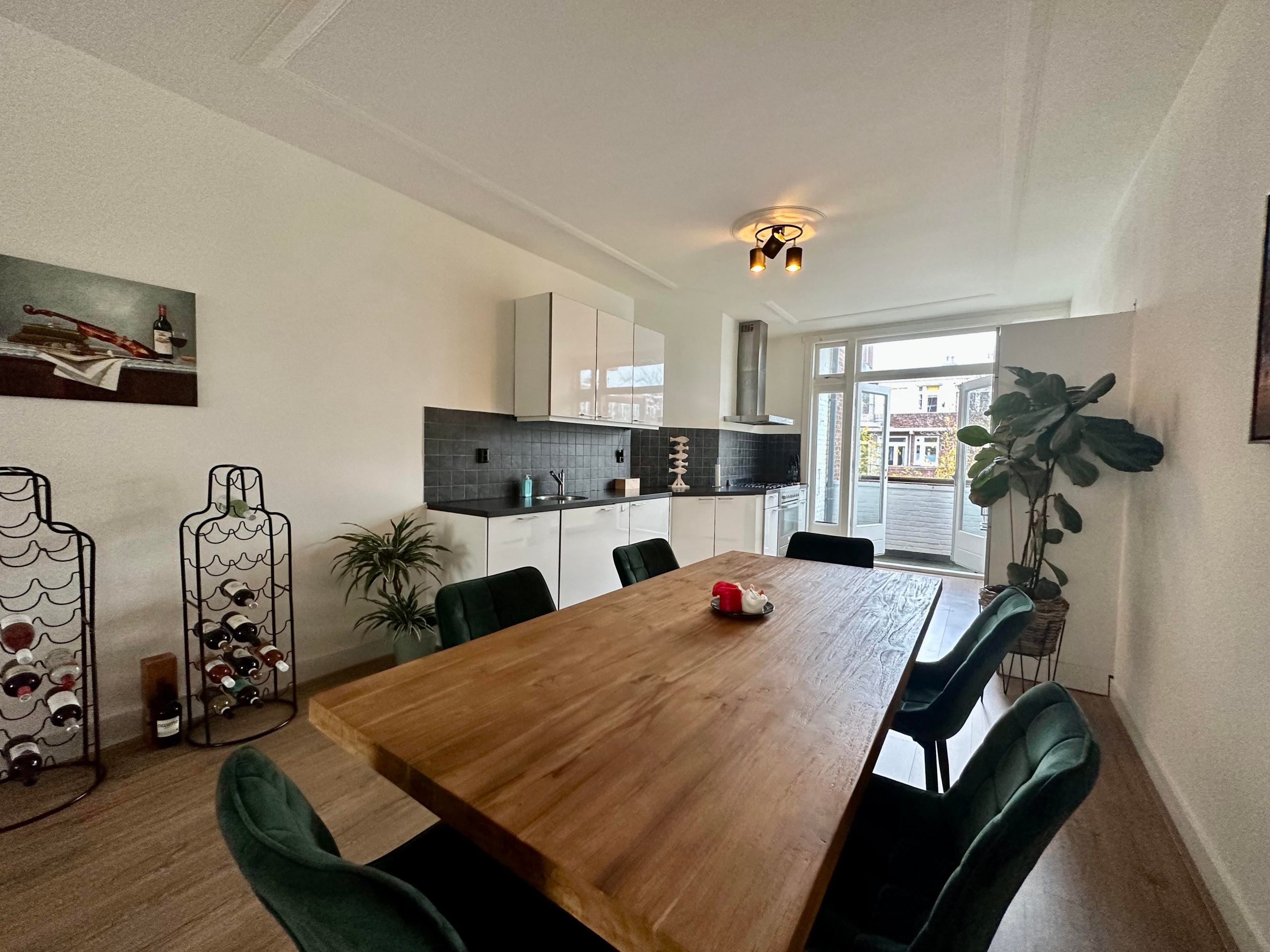 Layout: open porch to the first floor. Entrance to the house, hall with wardrobe, corridor with access to all rooms. Atmospheric living and dining room of approximately 12.5 m long. Living room at the front with attractive bay window with stained glass and original fireplace. Dining room at the rear with open kitchen with sink, dishwasher, beautiful gas stove with oven, extractor hood and fridge/freezer combination. Access to the balcony located on the northwest via French doors. Master bedroom located at the rear with access to the second balcony. Spacious room with cupboard wall and washing machine and dryer space and again access to the balcony. Second bedroom located at the front with a closet. Modern bathroom with washbasin, towel radiator and walk-in shower with rain shower head. Modern toilet.