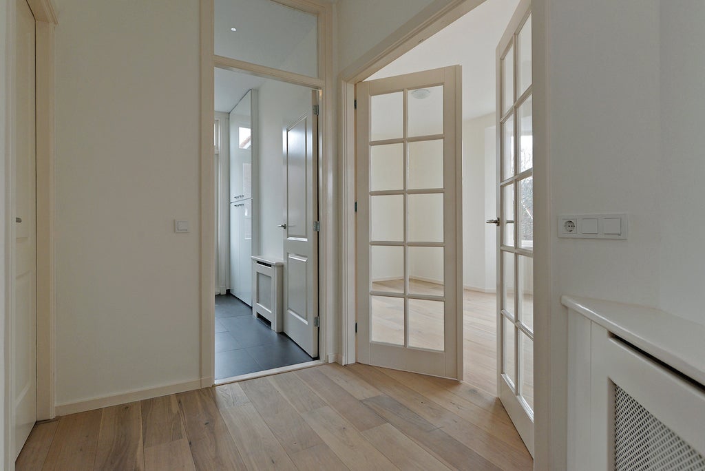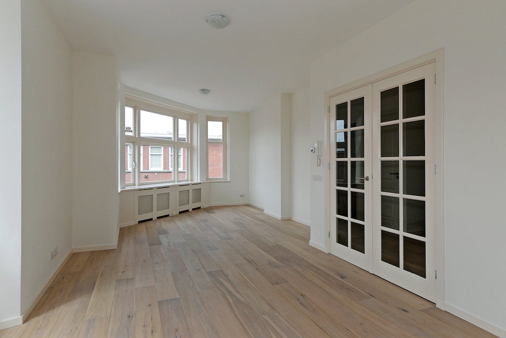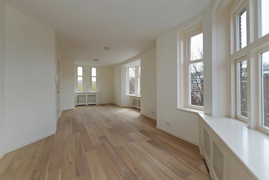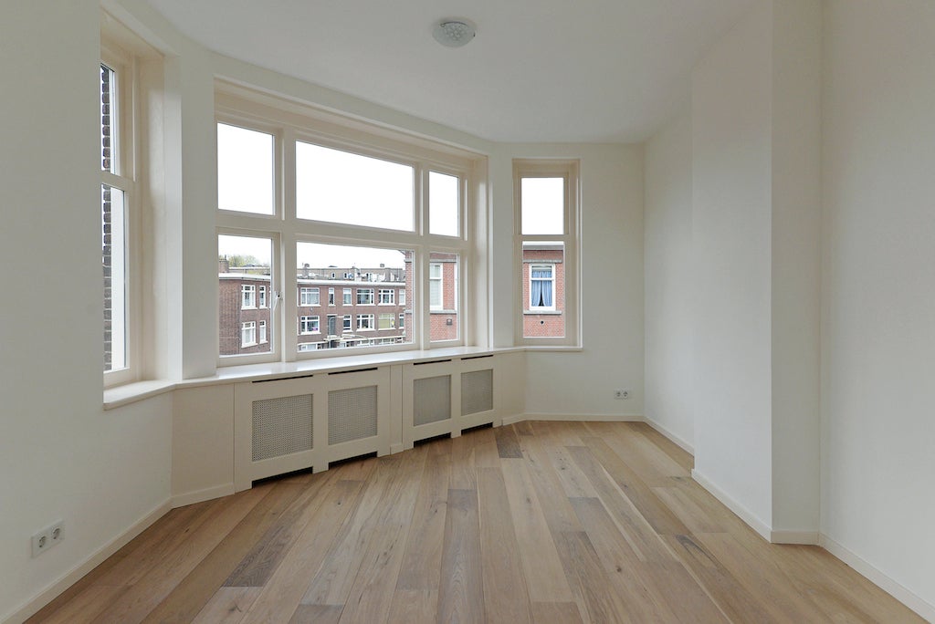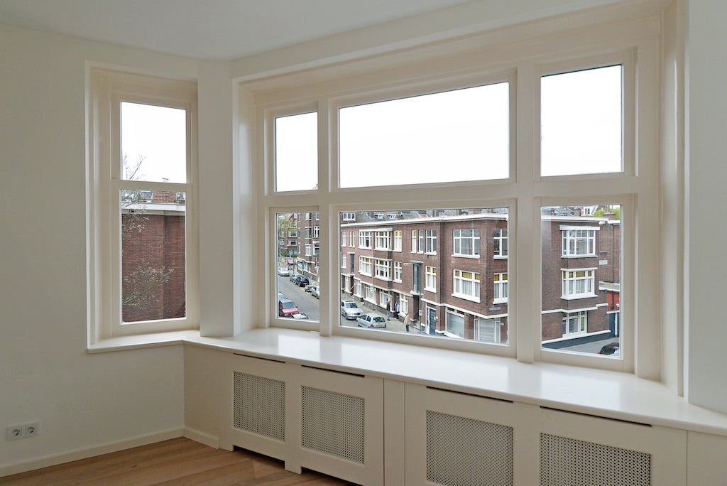 Indeling: entree middels Haags portiek op de 1e etage met intercom en elektrische deuropener, (fietsen-kinderwagen-)bergruimte (maar er is tevens een afzonderlijke uitpandige (fietsen-(berging) en (meter-)kast; binnentrap naar de 2e etage; zeer royale overloop/hal; fraaie dubbele deuren partij met roedeverdeling en glas naar riante, lichte, zonnige, sfeervolle op de hoek van de Pippeling- en Goudreinetstraat geleggen woon-en eetkamer (voormalige suite) totaal ca. 10m x 2.75m/4.20m/3.55m, voorzien van geisoleerde buitengevels, eiken parketvloer, strakke stucwanden en -plafond, radiatoren achter lambrisering en twee fraaie erkers; voorzijkamer ca. 4.15m x 3.20m, voorzien van geisoleerde buitengevels, eiken parketvloer en radiator achter lambrisering; super luxe doucheruimte, voorzien van wastafel en meubel, spiegel met verlichting, handdoekradiator, inloopdouche met drain, fraaie kranen en stort-douche-kop, wit wand- en zwart vloertegelwerk.; luxe toilet, voorzien van vrij hangende closetpot, fontein, wit wand- en zwart vloertegelwerk; achterzijkamer, ca. 4.35m x 3m, voorzien van parketvloer en radiator achter lambrisering; moderne luxe keuken , wit hoogglans blok, zwart composiet blad, 5 pits kookplaat, design circulatiekap, oven koelkast, vrieskast, vaatwasser, onder-en bovenkasten en lokatie Agpo cv combi ketel (2015); balkon achterzijde met balkonkast; fietsenberging achter de woning.