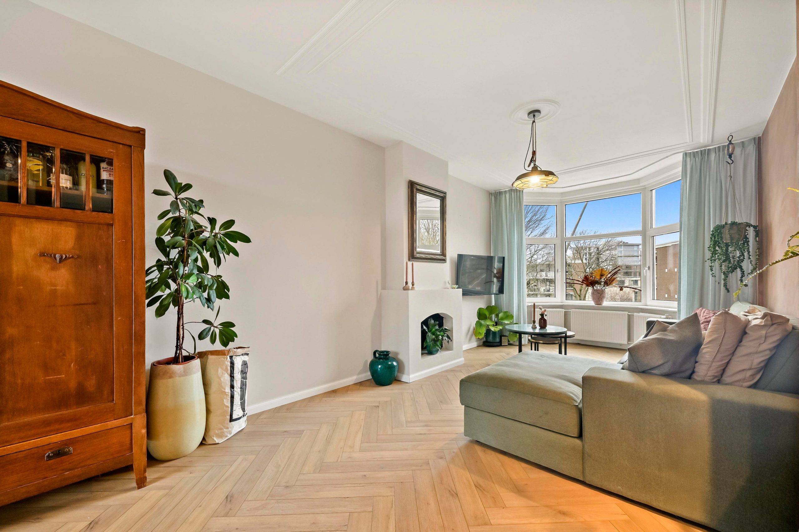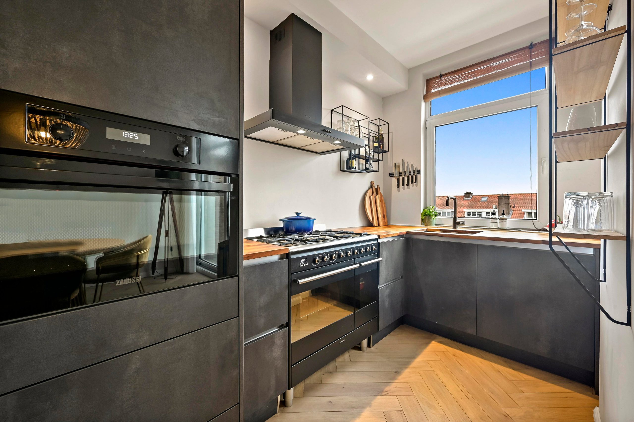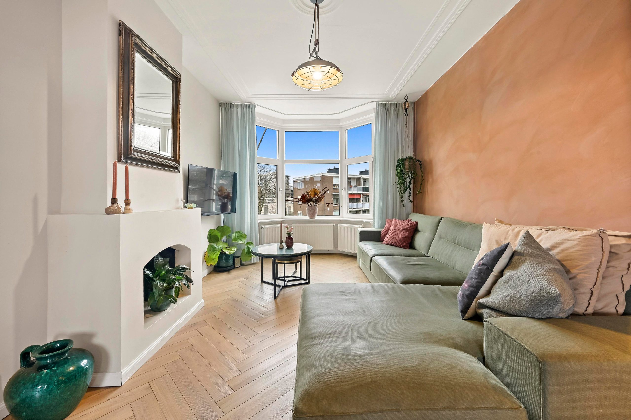 Indeling: open Haags portiek met trap naar de eerste etage. Entree met meterkast en opbergruimte. Trap naar de tweede etage. Ruime overloop met toilet met fontein en ​tussenkamer​ ​w​at zorgt voor voldoende opbergruimte. Ruime en lichte doorzon woon-/eetkamer met erker aan de voorzijde en gezellige (sier)openhaard, via schuifpui toegang tot het zonnige balkon gelegen aan de achterzijde op het zuidwesten. Luxe half open woonkeuken voorzien van Smeg gasfornuis met 5 pitten en grote dubbeleoven, combimagnetron, koel-/vriescombinatie en vaatwasser. Terug in de gang, toegang tot de eerste ruime slaapkamer gelegen aan de voorzijde. Luxe badkamer aan de achterzijde voorzien van extra groot ligbad, dubbel wastafelmeubel, een zeer ruime inloopdouche, handdoekradiator en vloerverwarming. De wasmachine en droger zijn mooi weggewerkt in een vaste inbouwkast. Via de trap in de gang toegang tot de tweede woonlaag met een ruime overloop en openslaande deuren naar het dakterras. Ruime slaapkamer met wederom openslaande deuren naar het zonnige dakterras. De derde slaapkamer is voorzien van een vaste kast en dakraam.