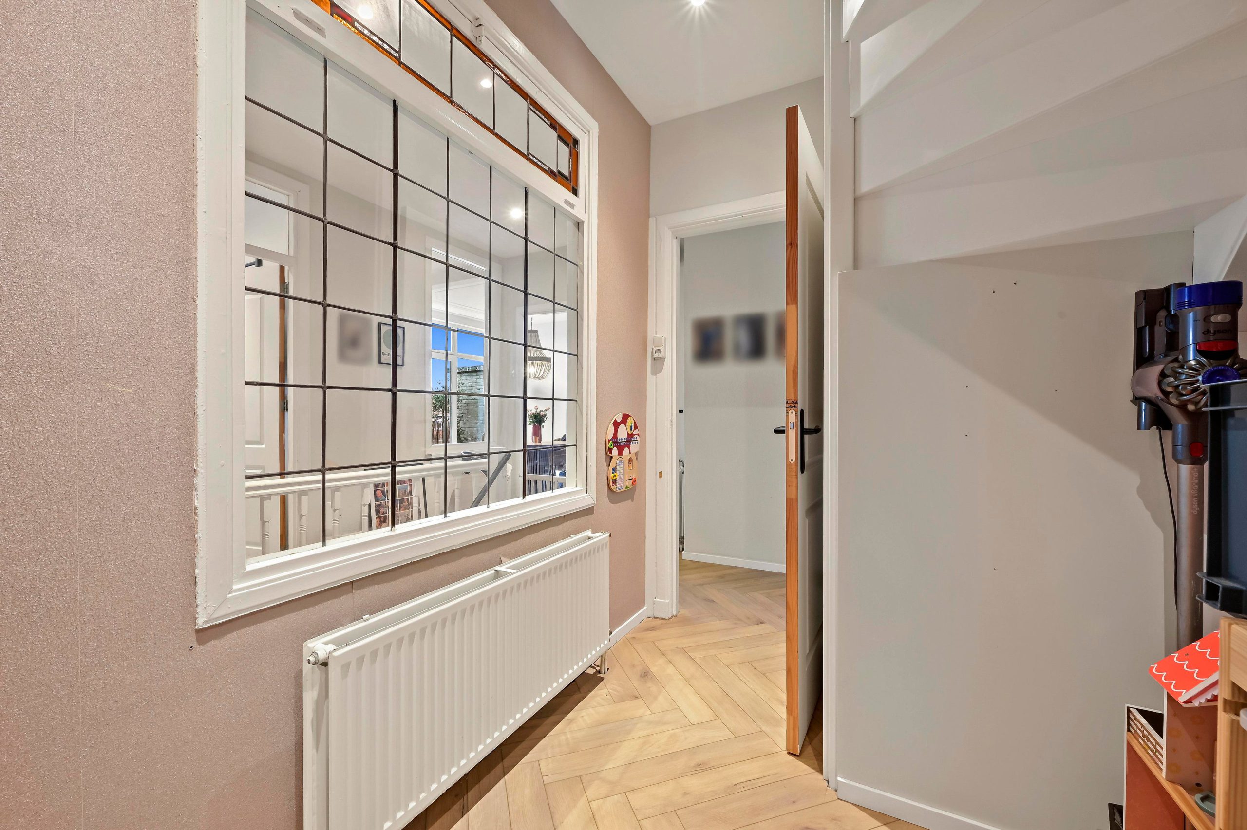 Layout: open Hague porch with stairs to the first floor. Entrance with meter cupboard and storage space. Stairs to the second floor. Spacious landing with toilet with washbasin and intermediate room which provides sufficient storage space. Spacious and bright living/dining room with bay window at the front and cozy (decorative) fireplace, access via sliding doors to the sunny balcony located at the rear on the southwest. Luxurious semi-open kitchen with Smeg gas stove with 5 burners and large double oven, combination microwave, fridge/freezer and dishwasher. Back in the hallway, access to the first spacious bedroom located at the front. Luxurious bathroom at the rear with extra large bath, double washbasin, a very spacious walk-in shower, towel radiator and underfloor heating. The washing machine and dryer are nicely concealed in a fixed built-in wardrobe. Via the stairs in the hallway access to the second living floor with a spacious landing and patio doors to the roof terrace. Spacious bedroom with again patio doors to the sunny roof terrace. The third bedroom has a fixed wardrobe and skylight.