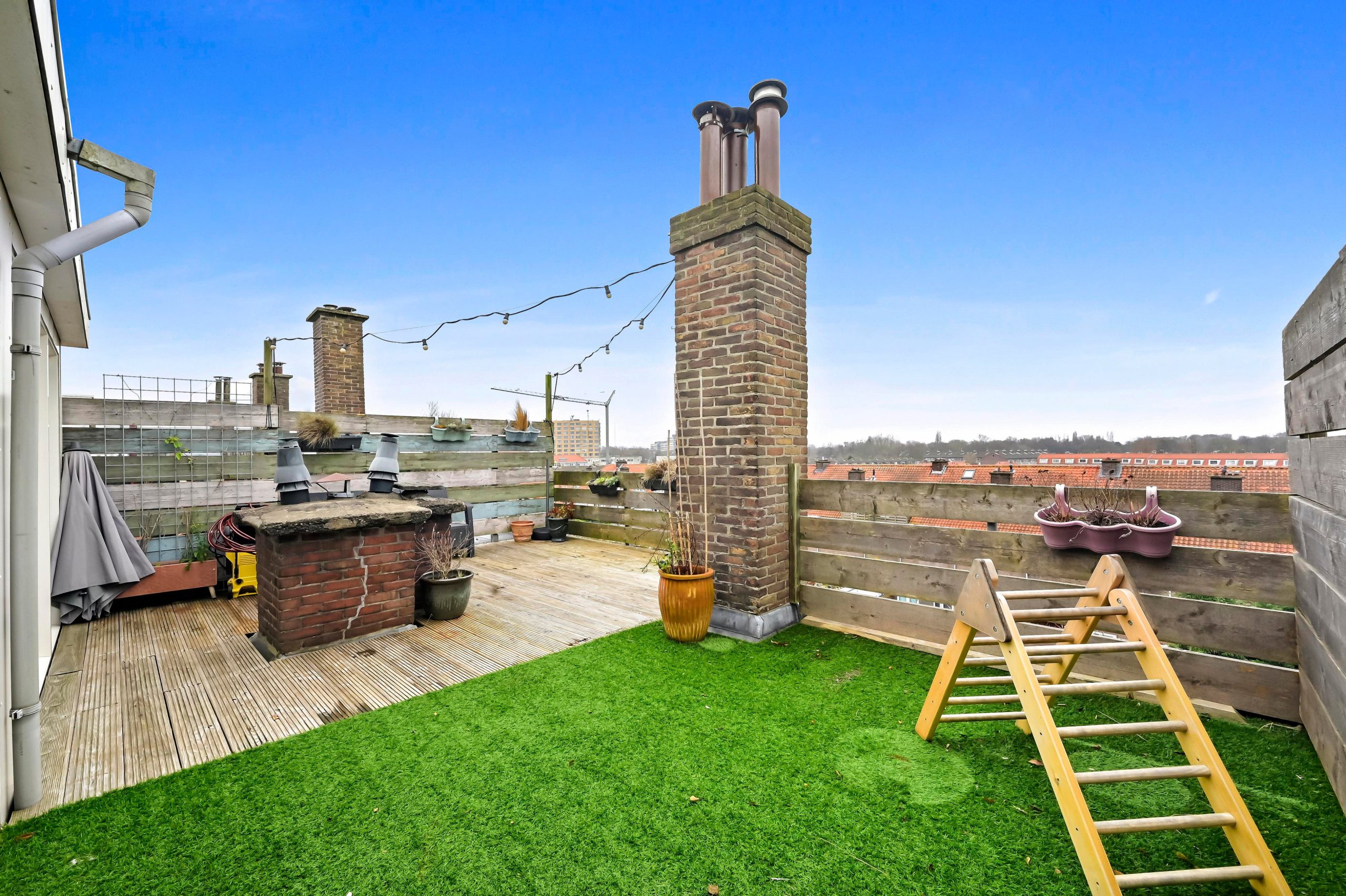 Wonderful and atmospheric DOUBLE upper house of 110m2 with 3 bedrooms, SUNNY BALCONY and a ROOF TERRACE of 29 m2 on the southwest, luxury bathroom, luxury kitchen and ENERGY LABEL ‘B’!