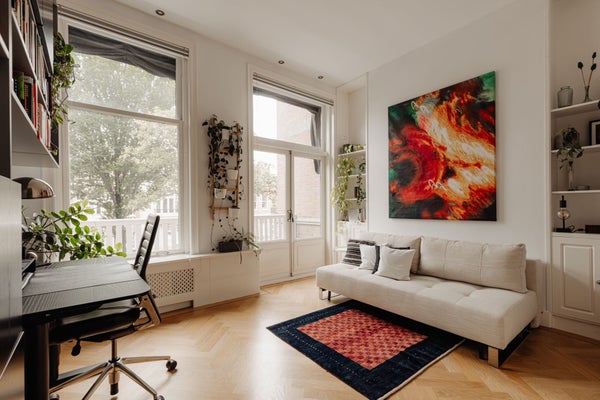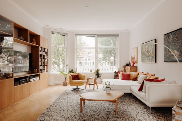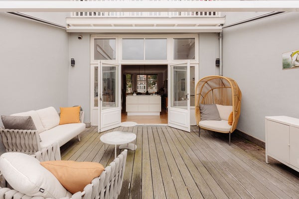 Bij binnenkomst in het appartement vallen direct een aantal unieke aspecten op: ruimtelijkheid, prachtige lichtinval en een mooie afwerking. In 2016 is het appartement volledig gerenoveerd en sindsdien perfect onderhouden. Hoge plafonds, vele raampartijen, houten visgraat vloer en heerlijke buitenruimtes vormen samen een fraai geheel.