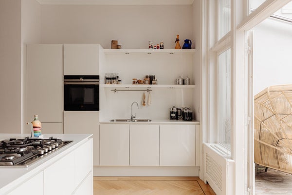 Vanuit de hal loop je via de glazen openslaande deuren naar de ruime woonkamer. Aan de achterzijde bevindt zich de leefkeuken, voorzien van een kookeiland, alle benodigde inbouwapparatuur, voldoende opbergruimte en toegang tot het terras. Het terras is een aangename verrassing, het grenst aan de living en ligt op het oosten, waardoor je kunt genieten van de ochtend- en vroege middagzon. Voor de avondzon kun je terecht op het balkon aan de voorzijde, dat over de volledige breedte van de woning loopt en uitzicht biedt over de chique Prins Mauritslaan.