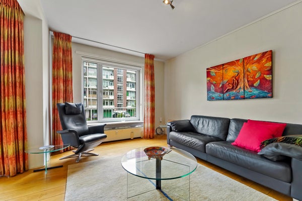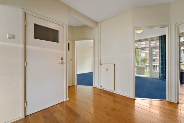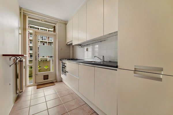 Bright 3-room apartment with 2 bedrooms located on the first floor with ELEVATOR in the POPULAR BLOEMENBUURT. The house has a lovely spacious front (SOUTHWEST), -and rear BALCONY so you can enjoy the sun all day long! There is also a spacious STORAGE ROOM at street level for sufficient storage space (including for bicycles).