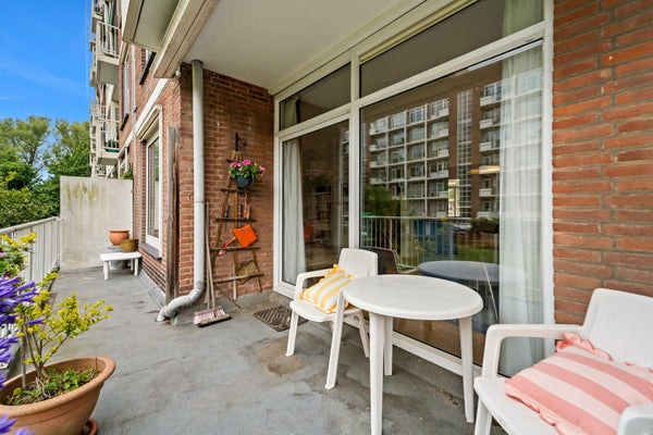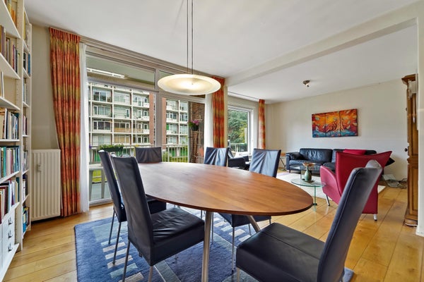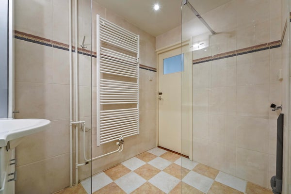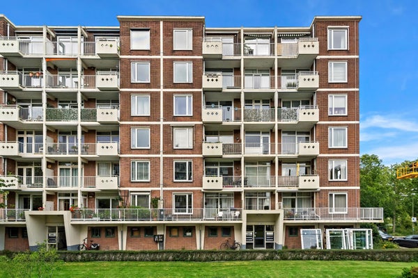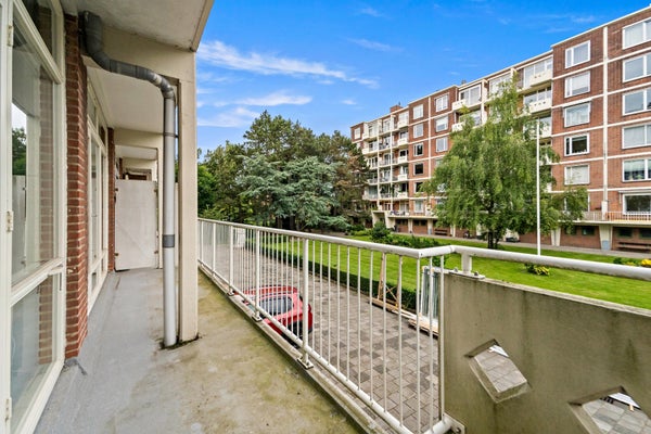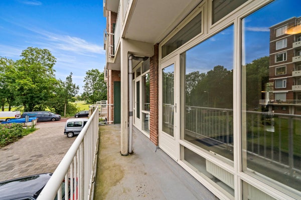 Closed porch with intercom, mailboxes and doorbells, hall with a draft door to the elevator and the staircase. Entrance house, spacious hall with access to all rooms. Bright living/dining room with green view and sliding doors to the sunny extra wide balcony (SW), kitchen equipped with various built-in appliances such as a fridge/freezer, an oven dishwasher, 5-burner gas hob and sufficient cupboard space. From the kitchen access to the balcony located at the rear with morning sun and is equipped with a balcony cupboard. Two spacious bedrooms located at the rear, both of which offer access to the balcony. Very spacious bathroom with walk-in shower, sink, towel radiator and washing machine and dryer connection. Separate toilet with washbasin.