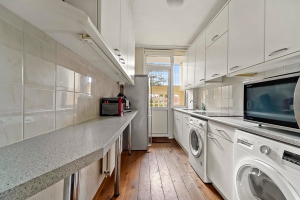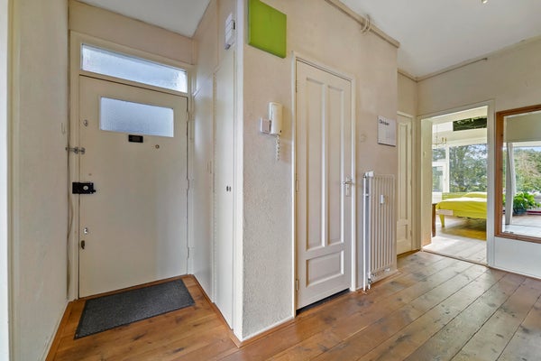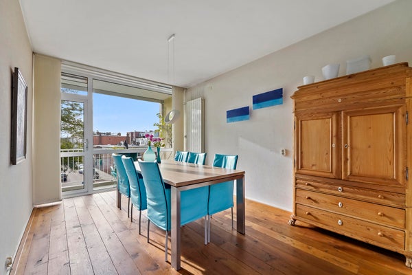 Indeling: Toegang via gesloten portiek aan de voor- en achterzijde. Bellen- en brievenbussentableau. Via lift of trap naar de tweede etage. Entree woning, ruime hal met vaste garderobekast en toegang tot alle vertrekken. Royale en lichte woon-eetkamer ensuite met schuifseparatie en vaste kasten. Vanuit de eetkamer aan de achterzijde toegang tot het zonnige balkon voorzien van elektrisch zonnescherm. Lichte woonkamer aan de voorzijde met bijgetrokken voorzijkamer (deze is eenvoudig terug te brengen naar een tweede slaapkamer). De gehele woning is voorzien van een prachtige houten vloer, kunststof kozijnen en dubbel glas. Keuken gelegen aan de achterzijde voorzien van een inductiekookplaat, koel-vriescombinatie en wasmachine aansluiting. Vanuit de keuken is er toegang tot het tweede balkon met voorraadkast. De ruime hoofdslaapkamer gelegen aan de achterzijde beschikt over een diepe vaste kast. Moderne badkamer voorzien van inloopdouche, wastafelmeubel en handdoekradiator.