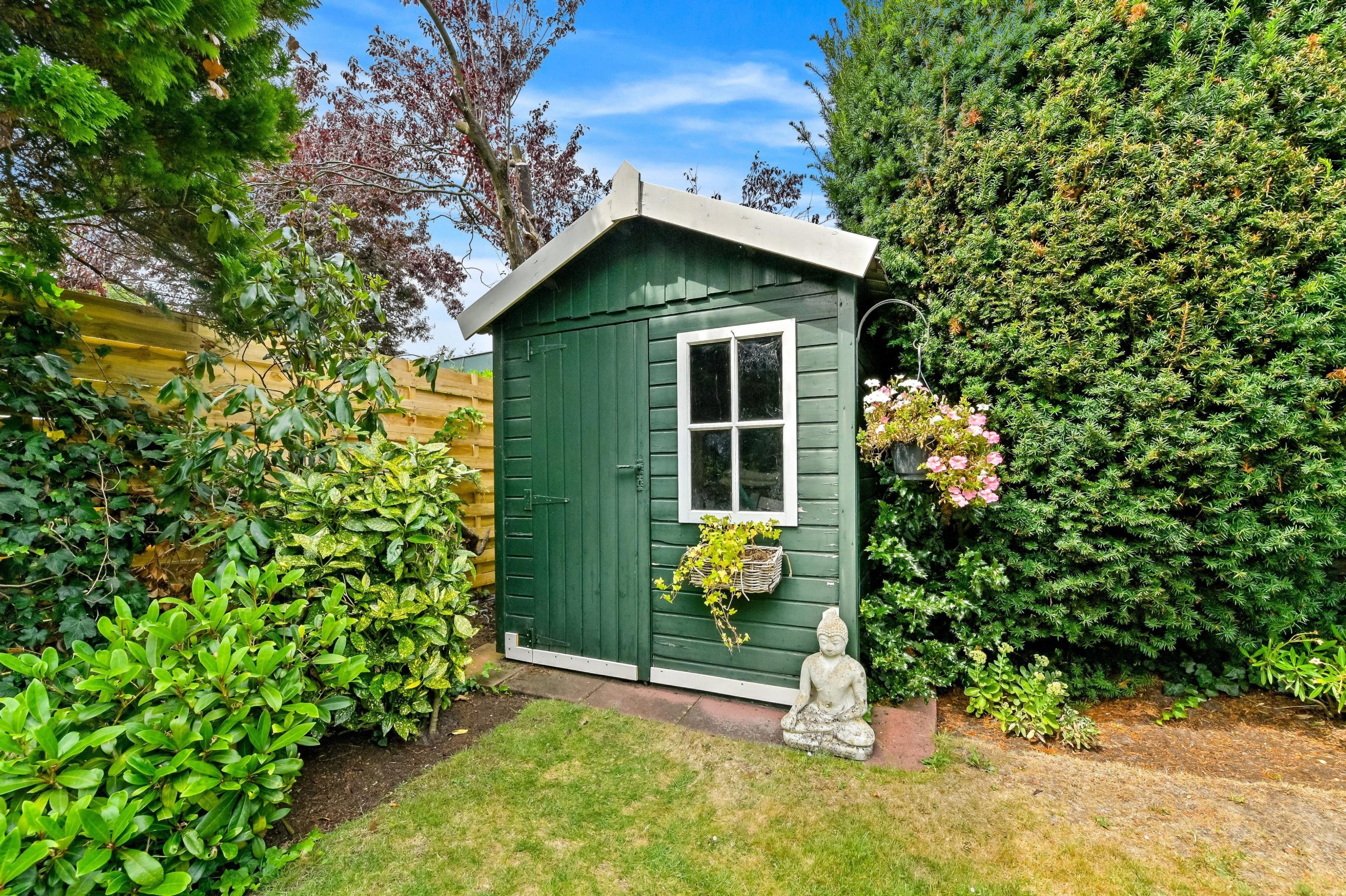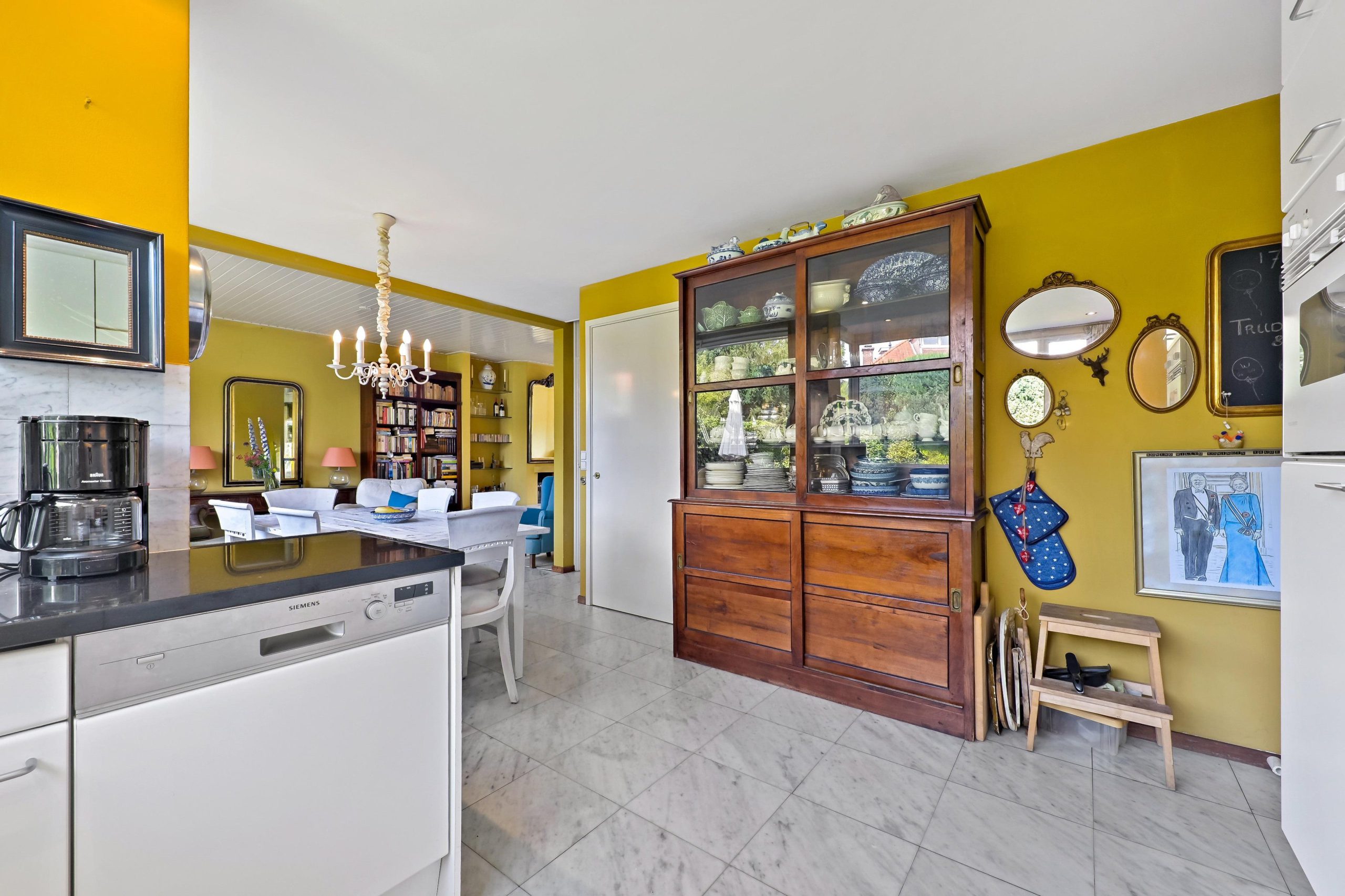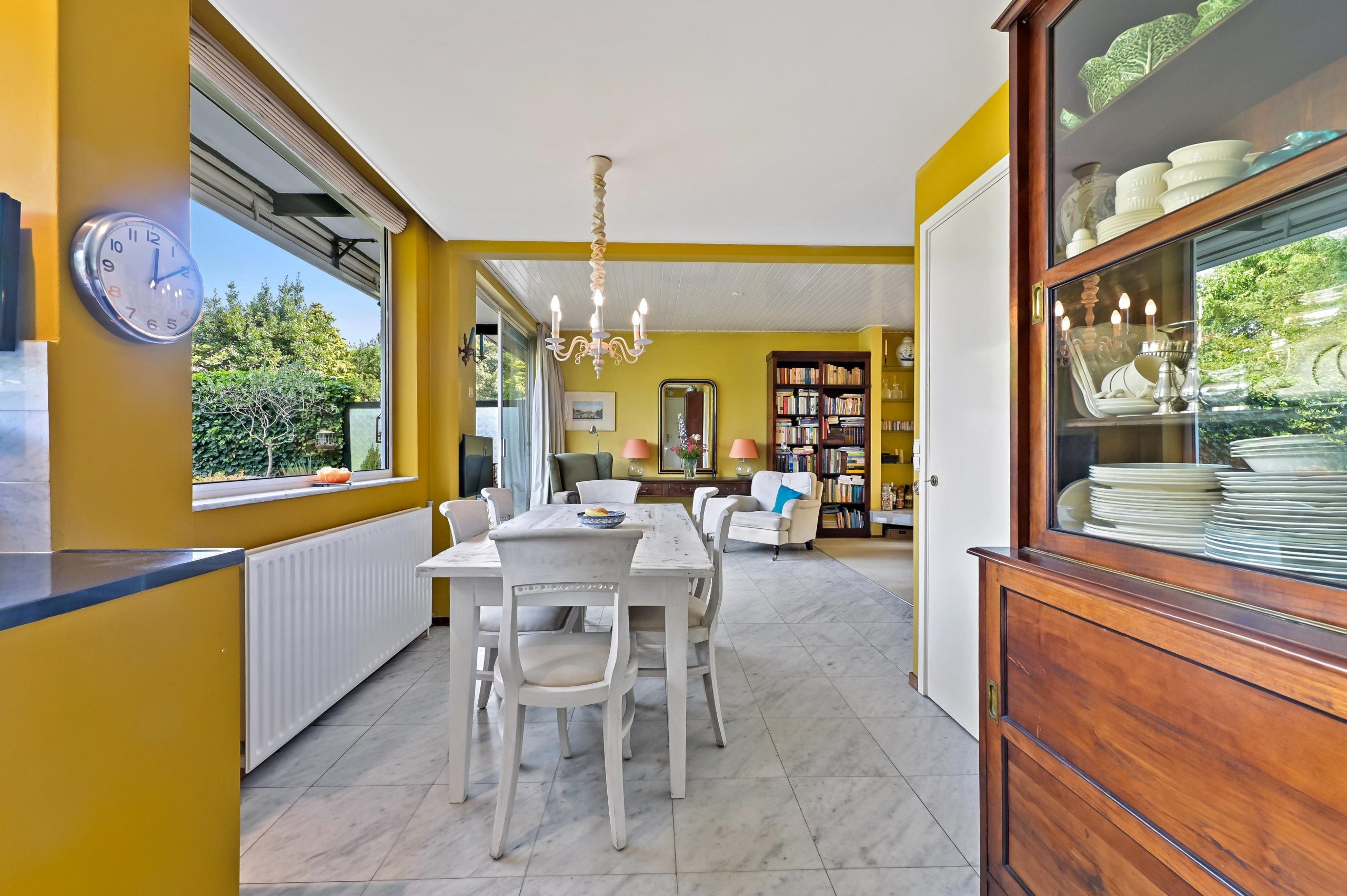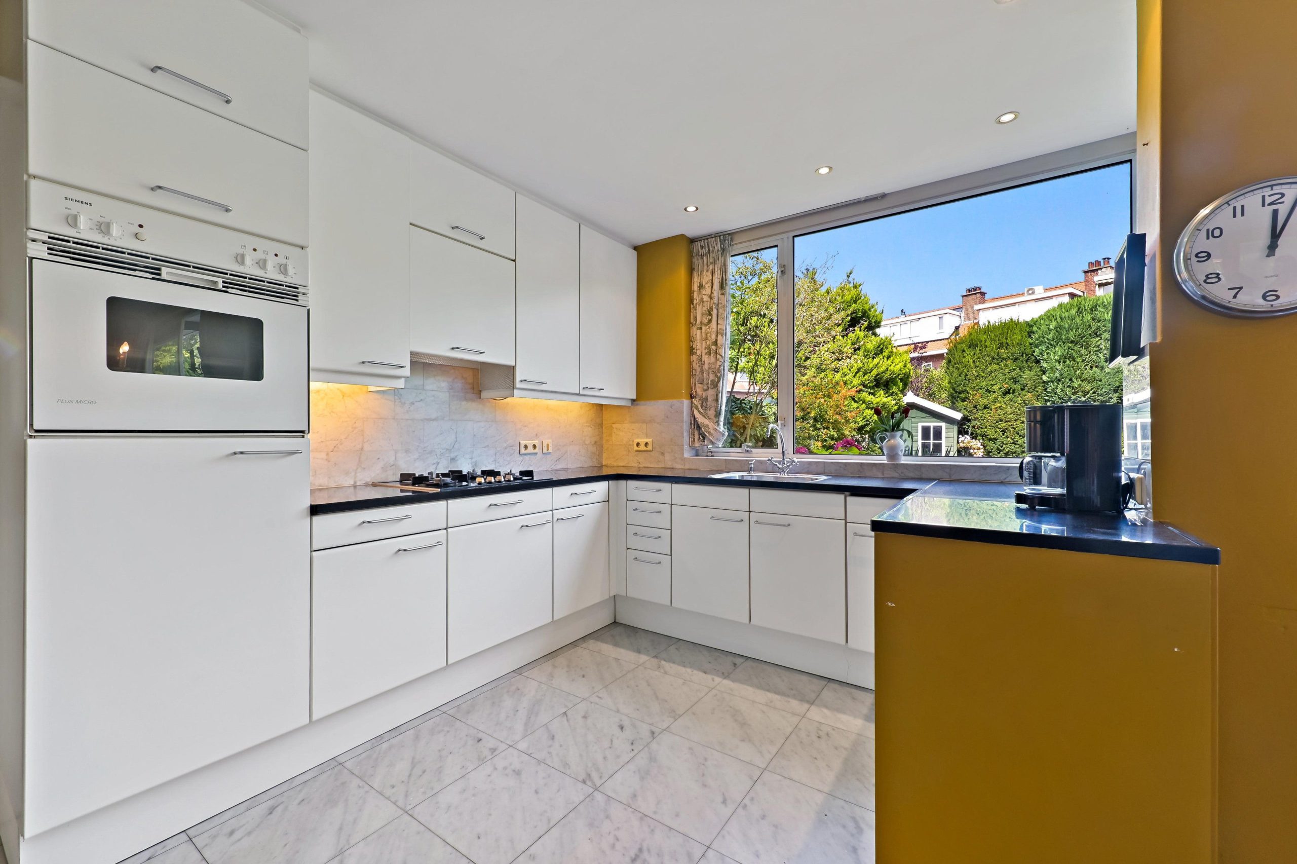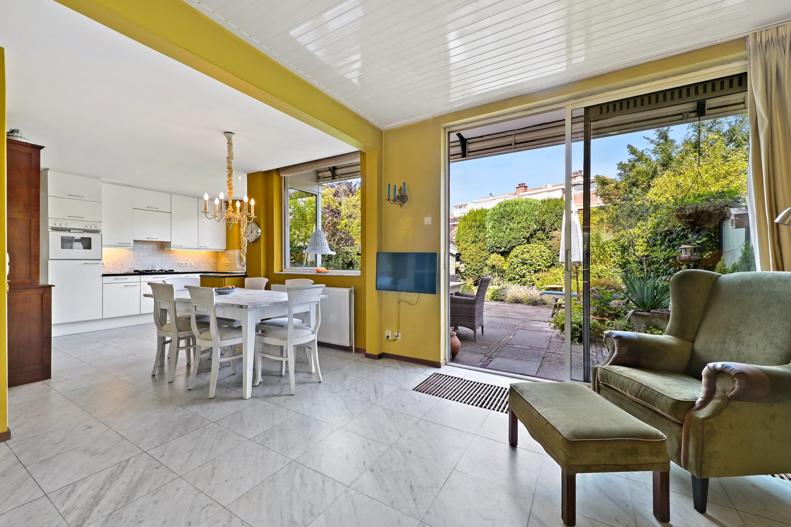 Layout: Entrance through the front garden. Spacious driveway with space to park a car, garage with adjacent (bicycle) storage and access to the utility room and kitchen. Entrance to the house, hallway, modern toilet with hand basin, access to the basement, and access to the living/dining room. Spacious kitchen/diner with built-in appliances and access to the utility room with washing machine connection and central heating system, and the garage. Spacious and bright living/dining room with plenty of natural light, featuring a charming bay window at the front. At the rear, sliding doors open onto the beautiful, secluded garden. The southwest-facing garden features a lovely terrace, an electric awning, and a shed.