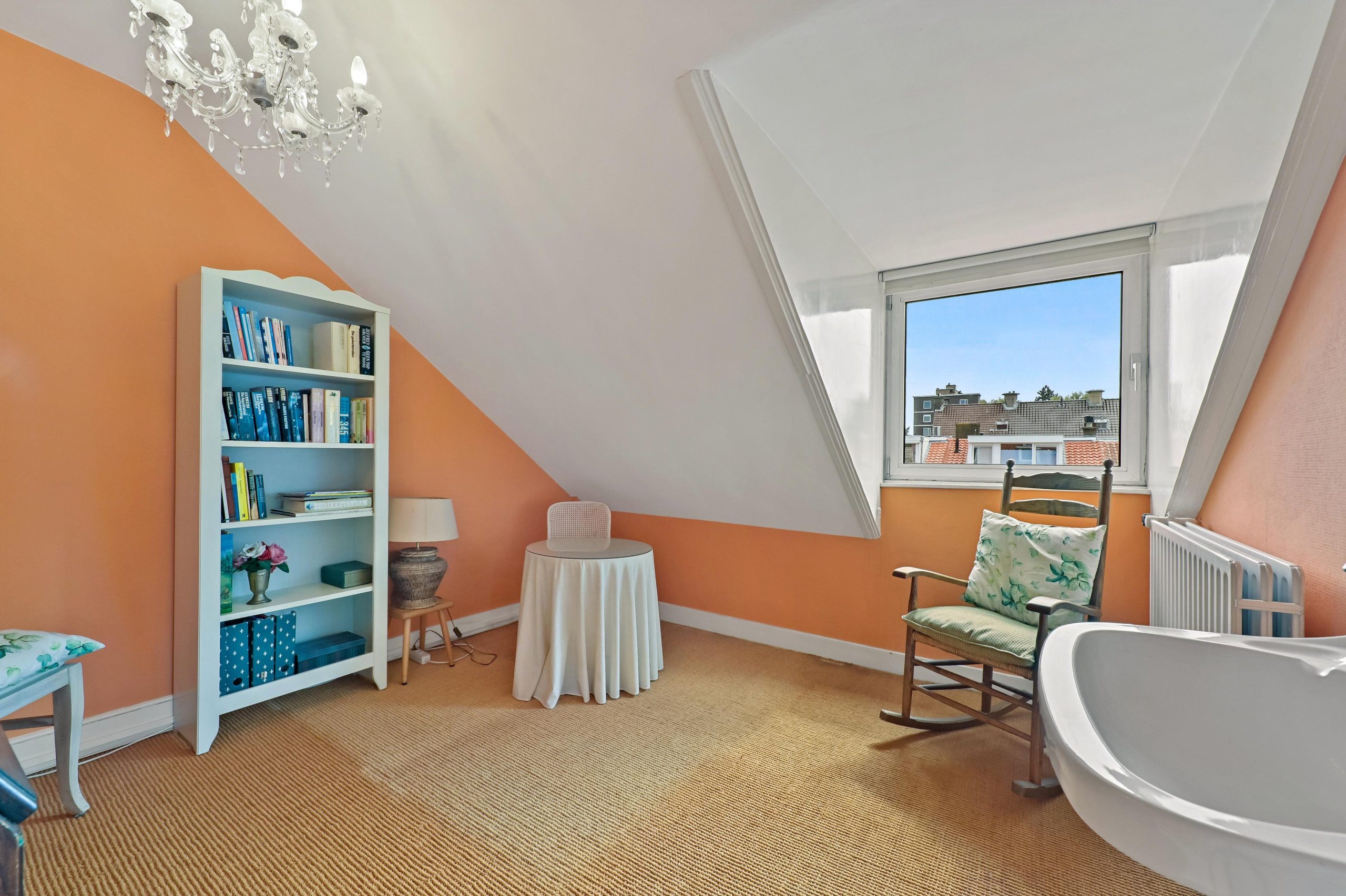 Vanuit de gang trap naar de eerste etage, ruime overloop met veel lichtinval door ramen aan de zijgevel. Hoofdslaapkamer gelegen aan de achterzijde met openslaande deuren naar het balkon. Vanuit zowel de slaapkamer als de gang toegang tot de badkamer voorzien van douche, wastafel en ligbad. Tweede en derde slaapkamer aan de voorzijde waarvan de grootste is voorzien van airco en wastafelmeubel. Toilet op de gang. Trap naar de 2e etage, overloop, aan zowel de voor als achterzijde een zeer ruime slaapkamer beide voorzien van dakkapel, wastafelmeubel, vaste kasten, en toegang tot de vliering waar een extra kamer kan worden gecreeerd. Achterzij slaapkamer voorzien van dakkapel en vaste kast. Tweede badkamer gelegen aan de voorzijde voorzien van douche en veel opbergruimte.
