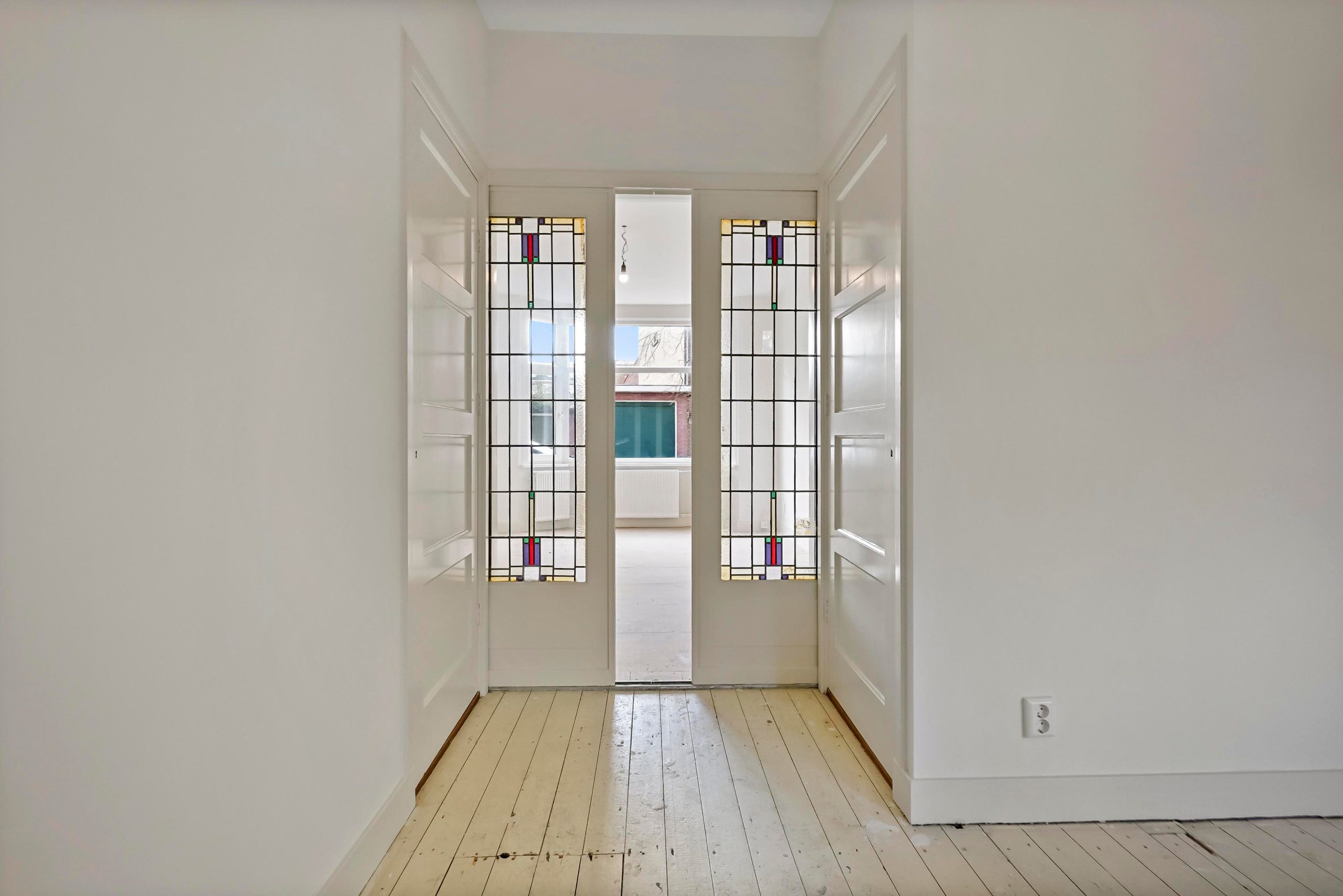 Lovely playful and spacious ground floor apartment of 87m2 located in the popular Vruchtenbuurt with authentic details such as the original sliding separation and fireplaces, 2/3 bedrooms and lovely garden with storage! The house is fully equipped with double glazing, a modern bathroom and kitchen!