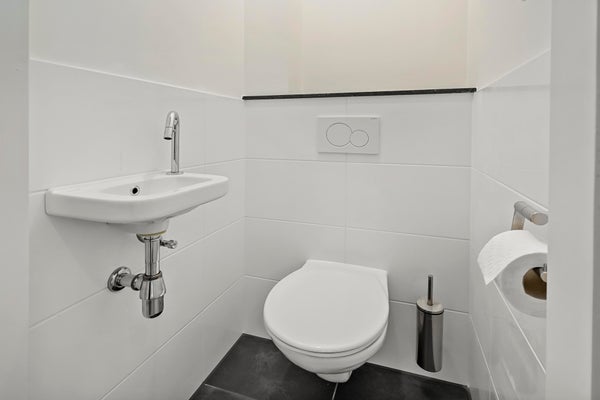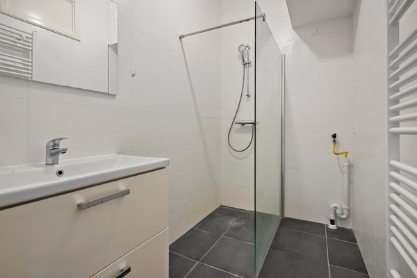 Inloopdouche, wastafelmeubel, wasmachineaansluiting