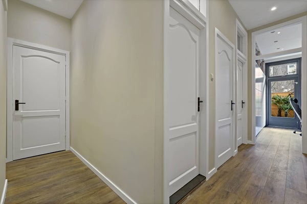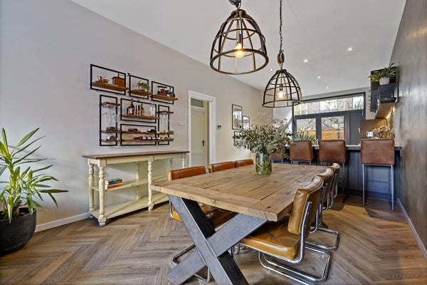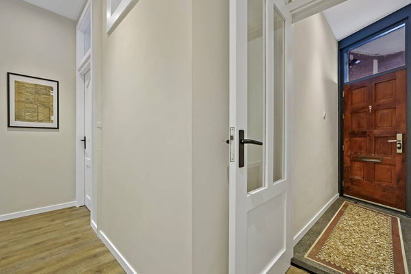Indeling: Entree op straatniveau, voortuin met ochtendzon, hal met originele granito vloer, gang met vaste inbouwkast en meterkast. Vanuit de gang toegang tot alle vertrekken. Toegang tot de ruime doorzon woonkamer met direct als eyecatcher de prachtige open woonkeuken aan de achterzijde met donker composiet werkblad, bargedeelte en is voorzien van LUXE keuken apparatuur zoals stoomoven, oven, vaatwasser, inductiekookplaat met downdraft afzuigsysteem (ALLES SIEMENS) en een Quooker kraan. Gezellige eetkamer en voorkamer met gas openhaard. Vanuit de keuken via openslaande deuren toegang tot de fraai aangelegde achtertuin. Terug in de gang, zeer ruime hoofdslaapkamer gelegen aan de achterzijde met toegang tot de tuin. Tweede slaapkamer gelegen aan de achterzijde voorzien van inbouwkastenwand met wasmachineaansluiting en CV opstelplaats en wederom toegang tot de tuin. Luxe gerenoveerde badkamer (2023) voorzien van inloopdouche, wastafelmeubel en handdoekradiator. Separaat toilet met fontein in dezelfde stijl als de badkamer. Derde ruime slaapkamer gelegen aan de voorzijde van de woning. De woning is voorzien van prachtige pvc vloer, elektrische gordijnen, HUE lampen en een slim slot.