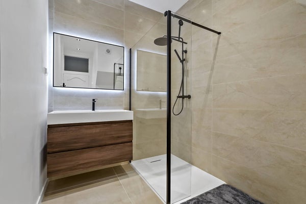 Vloerverwarming geheel, inloopdouche, wastafelmeubel