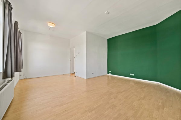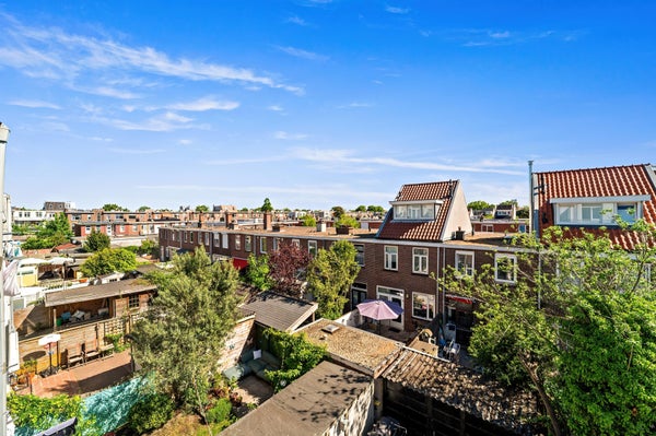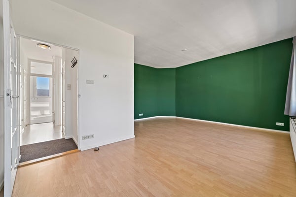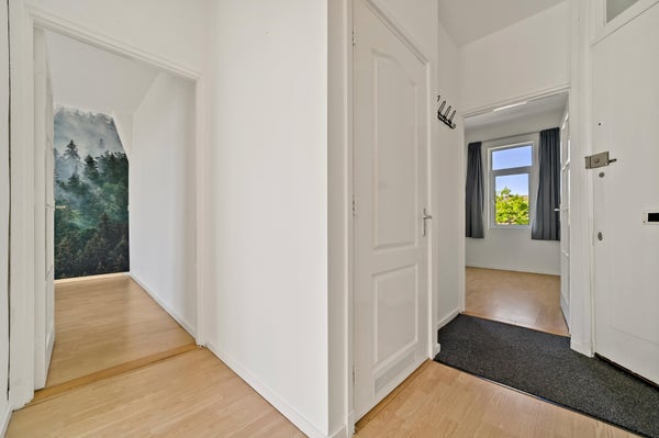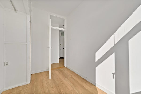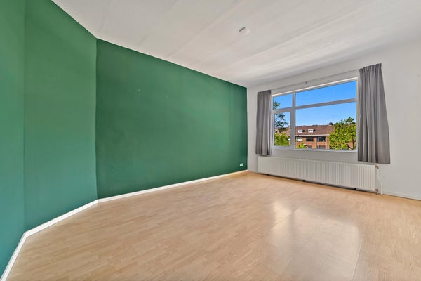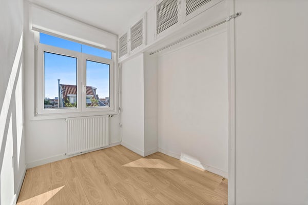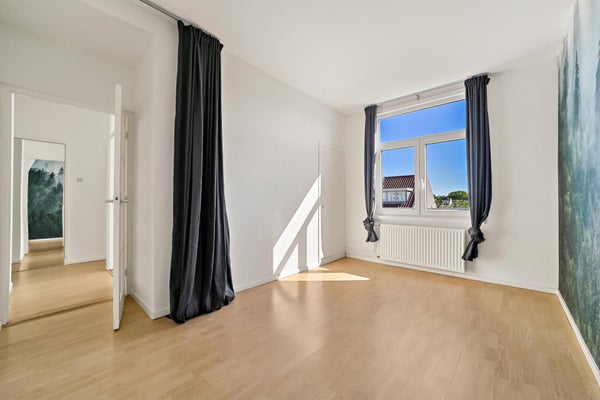 Access via open porch. Stairwell to the 2nd floor. Entrance, hallway with built-in closet. Access to all rooms from the hallway. Spacious and bright living room at the front with a wonderful view over the Soestdijksekade. Kitchen at the back equipped with various appliances such as a 4-burner gas stove, dishwasher, refrigerator, freezer and oven. From the kitchen access to the balcony located on the east where you can enjoy the morning sun. Both bedrooms located at the back. Bathroom with a shower and washbasin. Separate toilet with washing machine connection. The entire house has a beautiful laminate floor and plastic frames with double glazing.