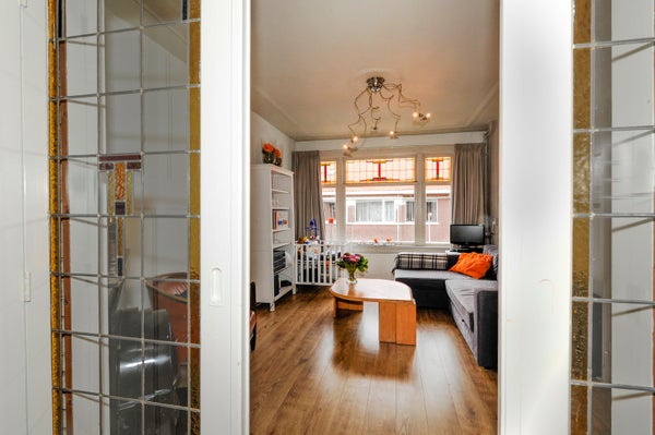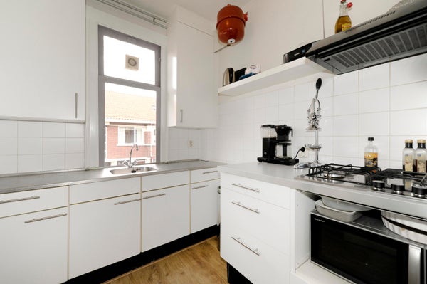 entree op straatniveau; binnentrap naar 1e etage; overloop; keuken aan de voorzijde, voorzien van wit blok met onder- en bovenkasten, 2e blok met kookplaat, afzuigkap en wit wandtegelwerk; voor- en achterkamer en suite circa 10.65 m x 3.60 / 3.00 m., voorzien van twee originele schouwen, stucplafonds met lijstwerk, originele schuifdeuren- en kastenseparatie; modern toilet met vrijdragend closet en fonteintje; achterbalkon; binnentrap naar 2e etage; royale overloop, voorzien van vaste kast en overige bergruimte, tevens loungebank; achterkamer circa 4.50 x 3.60 / 3.00 m., voorzien van vaste kast en dakkapel; voorkamer circa 4.50 m x 3.60 m. voorzien van vaste kast en dakkapel; moderne doucheruimte, voorzien van douche, wastafel in modern meubel, spiegelkastje, wasmachine, ventilator, handdoekradiator, grijs vloer- en wit wandtegelwerk; huurprijs is exclusief verbruik van gas, elektriciteit en water.