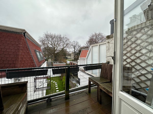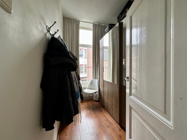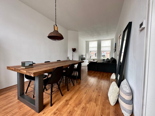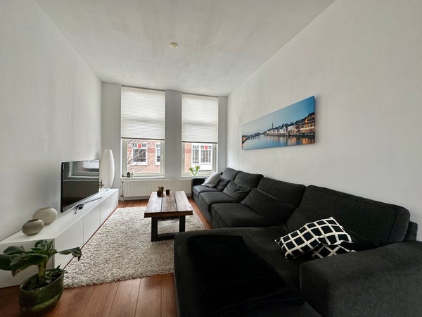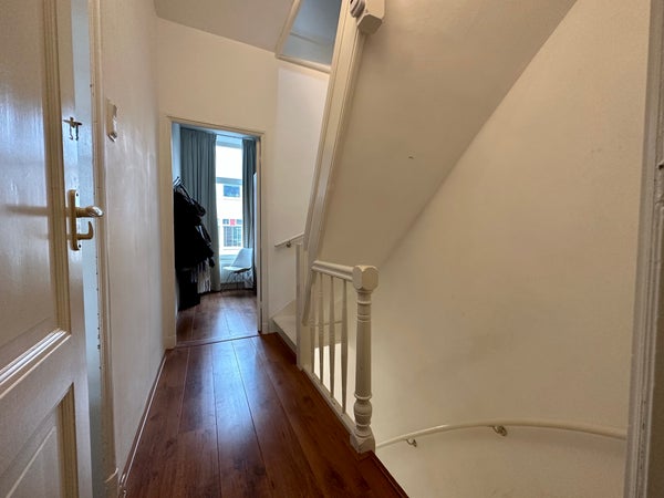 Entree op straatniveau, hal met trap naar de eerste etage. Gang voorzien van toilet met fontein. Via deur met glas in lood toegang tot de ruime en lichte doorzon woonkamer. Half open keuken aan de achterzijde voorzien van diverse apparatuur zoals combi-oven magnetron, koel/vriescombinatie, 4-pits gaskookplaat, afzuigkap en wasmachine. Vanuit de eetkamer aan de achterzijde toegang tot het balkon met ochtendzon en vrij uitzicht. Terug in de gang, garderobe/ studeerkamer. Trap naar de tweede etage, ruime overloop met dakraam en opbergruimte in de kap. Masterbedroom gelegen aan de voorzijde van de woning met tweepersoonsbed. Luxe badkamer voorzien van inloopdouche, wastafelmeubel, handdoekradiator en sanibroyeur toilet. Tweede ruime slaapkamer aan de achterkant.