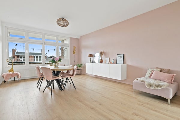 FANTASTIC SPACIOUS (93M2!) LIGHT and well-maintained apartment with FREE GREEN VIEW over the Stokroosveld located in the popular Bloemenbuurt. The apartment has 2 BALCONIES with morning and evening/afternoon sun, ideal! Located on the second floor and can be moved into immediately! The 13M2 STORAGE ROOM in the basement also provides sufficient storage space (including for bicycles).