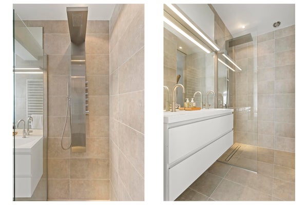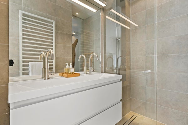 Dubbele wastafel, inloopdouche, wastafelmeubel