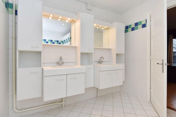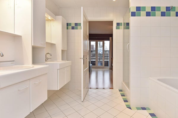Ligbad, douche, dubbele wastafel, wastafelmeubel