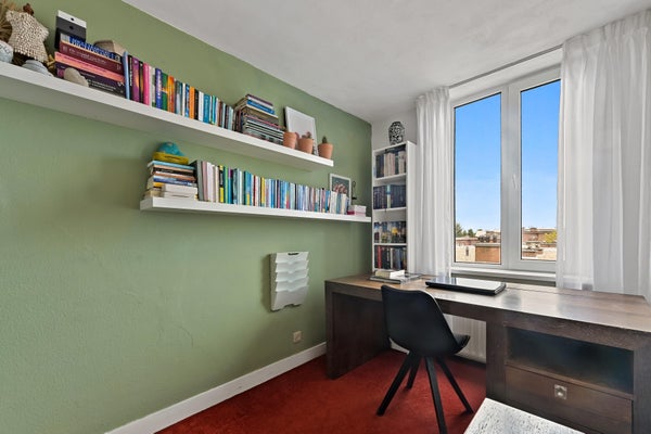 Stairs to the fourth floor with again a spacious landing with access to the fantastic sunny roof terrace of no less than 20m2 with a view of the skyline of The Hague and the dunes! The fourth bedroom has a skylight, which provides a lot of light and lots of storage space behind the knee walls!