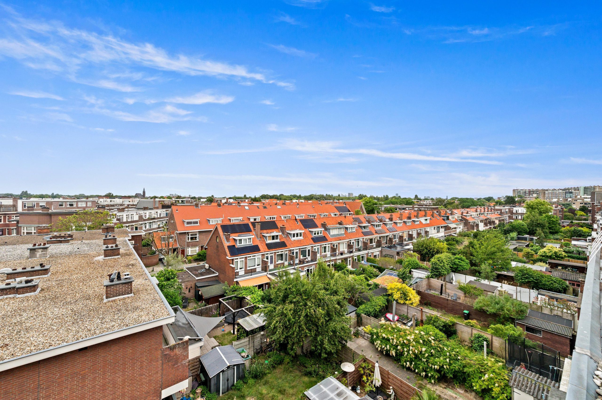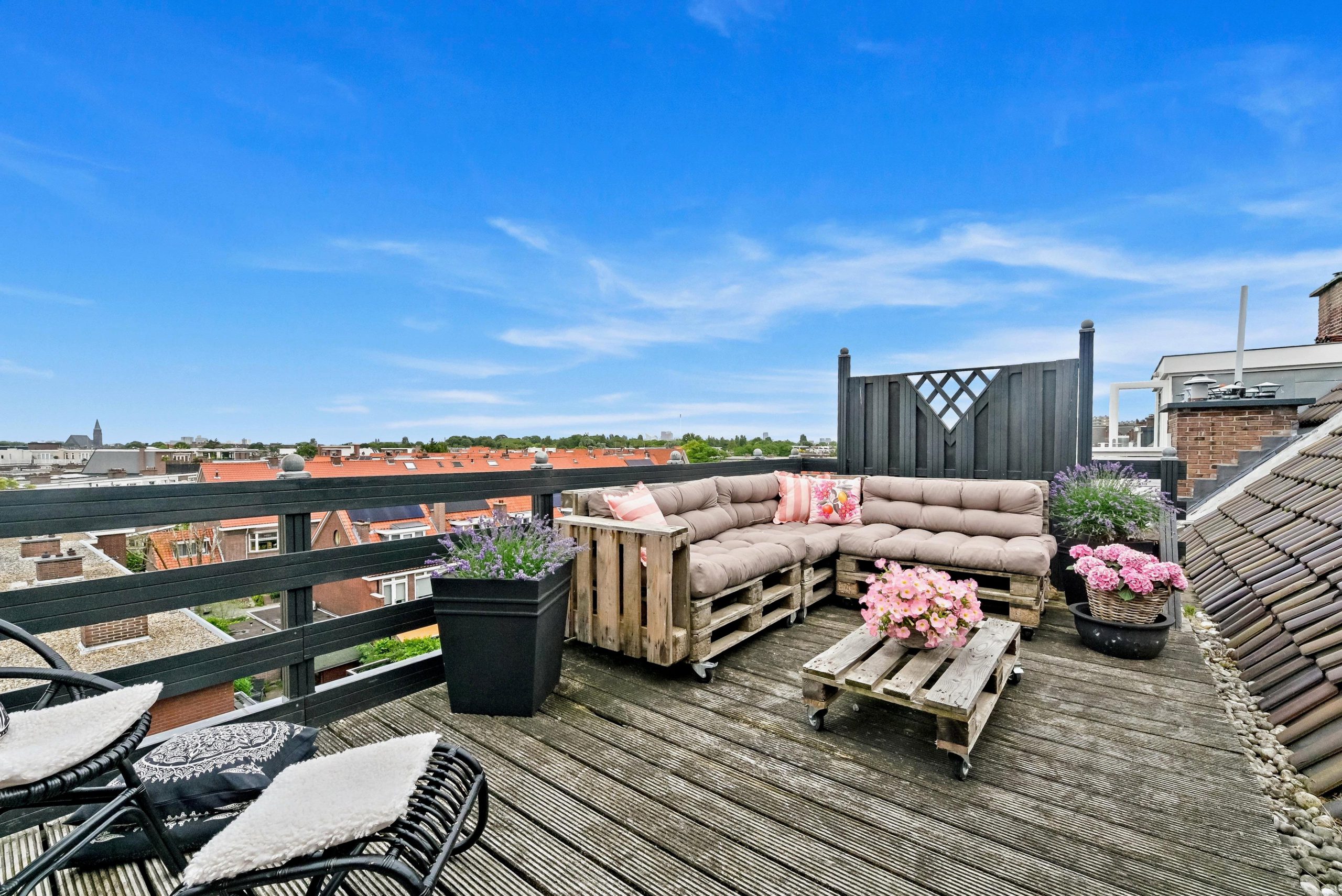 Insanely spacious THREE-LAYER upper house of no less than 150m2 with 4 spacious bedrooms, lovely BALCONY and fantastic sunny ROOF TERRACE with a view of the Skyline of The Hague!