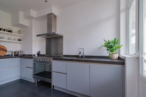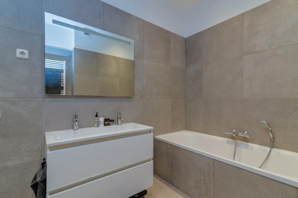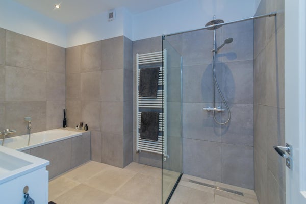 Dubbele wastafel, vloerverwarming geheel, zitbad, inloopdouche, wastafelmeubel