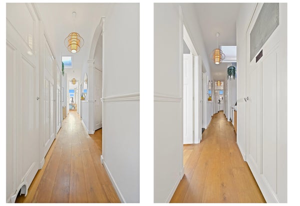 Prachtige authentieke details aanwezig zoals de en suite schuifseparatie, glas in lood, originele schouwen en paneeldeuren