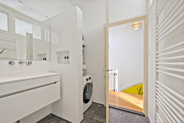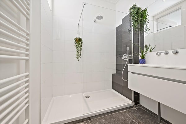 Inloopdouche, wastafelmeubel, wasmachineaansluiting