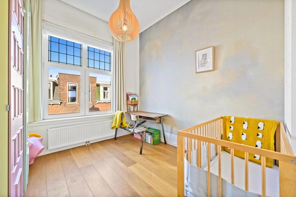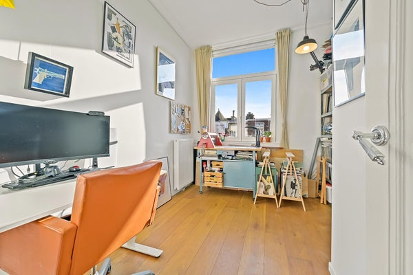 WAANZINNIGE TOP ETAGE van 112 m2 met maar liefst 4 slaapkamers in het gewilde STATENKWARTIER. De woning kenmerkt zich door de prachtige AUTHENTIEKE DETAILS zoals ornamenten plafonds, en suite schuifseparatie, glas-in-lood ramen, originele schouwen en paneeldeuren. Luxe open WOONKEUKEN, heerlijk aansluitend ZONNIG BALKON en heel veel lichtinval!