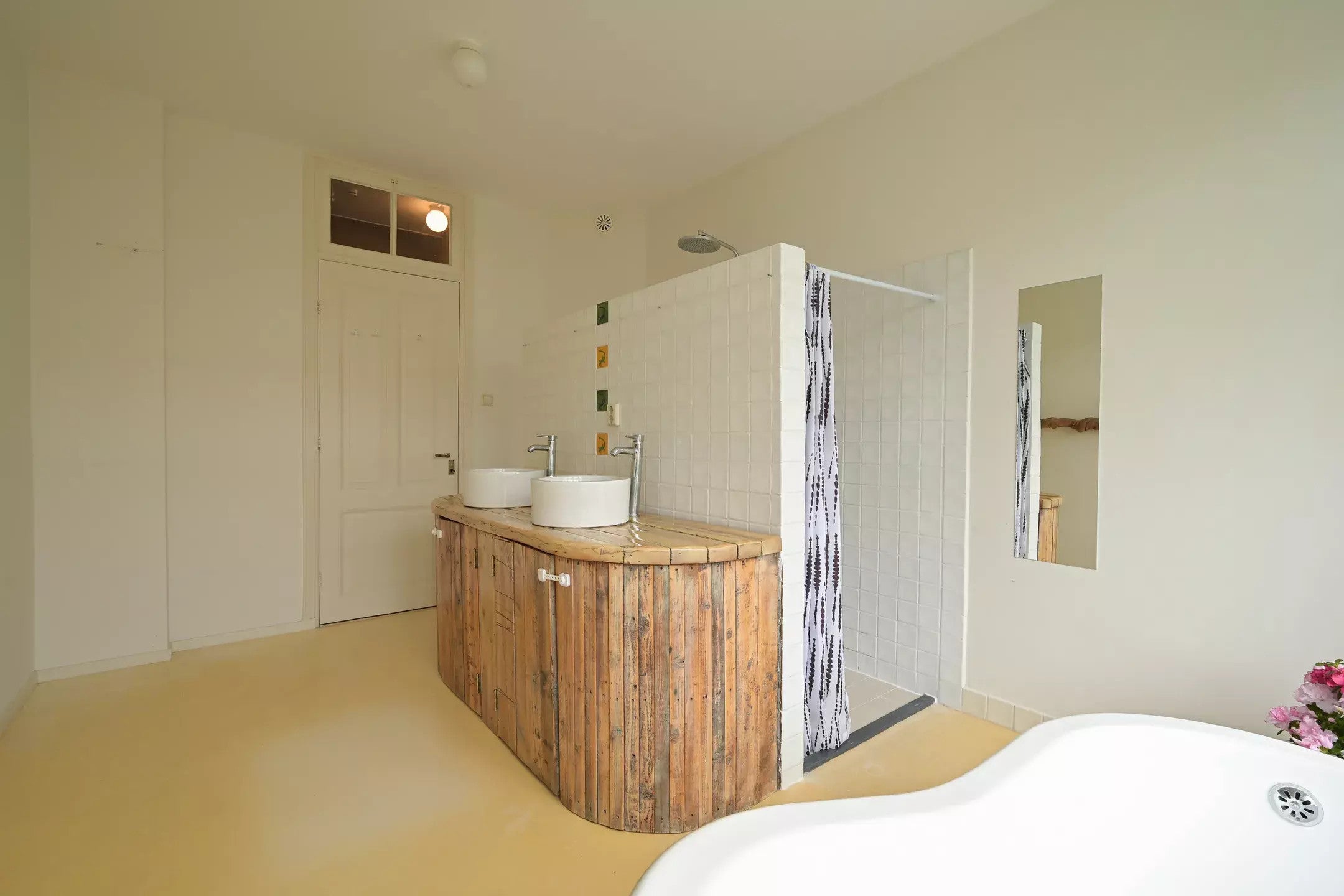 Ligbad, dubbele wastafel, inloopdouche, wastafelmeubel