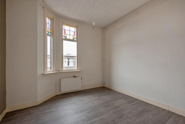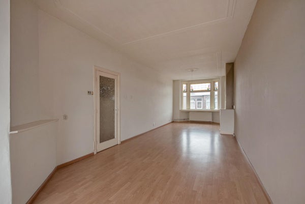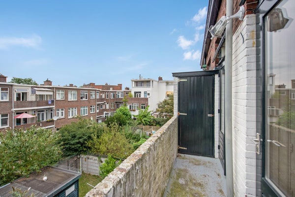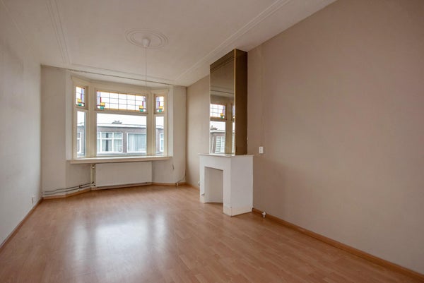 Indeling: open Haags portiek met trap naar de eerste etage; entree woning met bergingsruimte voor fiets, kinderwagen enzovoorts; binnentrap met bordes naar tweede etage; overloop met toegang tot alle vertrekken; toilet; woon- en eetkamer (doorgebroken kamers ensuite) met aan de voorzijde een erker; keuken, gelegen aan de achterzijde, voorzien van aanrechtblok, boven- en onderkasten, servieskast, kookplaat, afzuigkap en toegang tot het achterbalkon, gelegen op het noordwesten, voorzien van balkonkast; slaapkamer, gelegen aan de achterzijde, voorzien van toegang tot het zonnige balkon middels openslaande deuren; doucheruimte, voorzien van een douche en wastafel, wand- en vloertegelwerk en aansluitingen wasmachine; slaapkamer, gelegen aan de voorzijde;