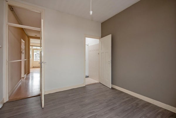 Ruim, licht, net en karakteristiek 4-kamer appartement gelegen op de tweede etage, voorzien een doorgebroken kamers ensuite, een voor- en een achterzijkamer, afzonderlijke royale doucheruimte, toilet, entree met bergruimte, overloop, keuken en achterbalkon;