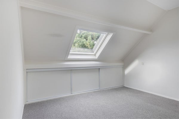 Overloop, slaapkamer aan voorzijde (ca. 3.64 x 3.38) met Velux dakvenster, slaapkamer aan achterzijde (ca. 3.93 x 3.65) met dakkapel, betegelde badkamer (ca. 2.04 x 1.95) met douche wastafel, wasmachine- en drogeraansluiting en toilet.