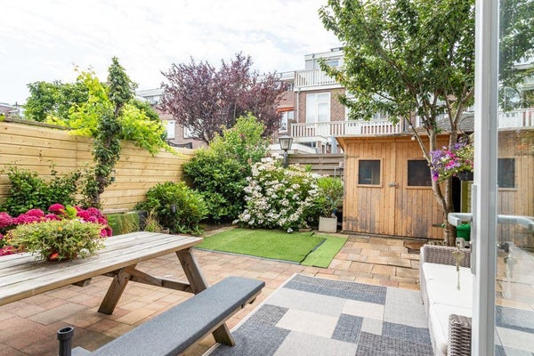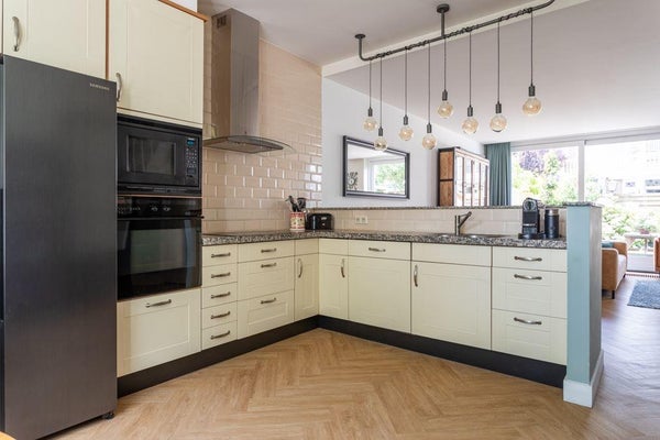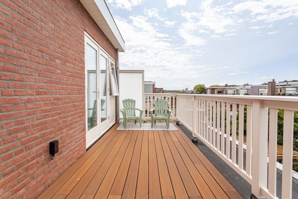 Begane grond: Bij binnenkomst door de mooie, zware houten deur met originele details, komt u in een ruime entree die leidt naar de hal. In de hal vindt u links de entree naar de woonkamer en de toegang tot toilet met fontein. Vanuit de hal heeft u toegang tot de open keuken en de ruime woonkamer. De keuken is voorzien van moderne apparatuur, waaronder een inductieplaat met afzuigkap, vaatwasser, oven, magnetron en een Amerikaanse koelkast met vriezer. De keuken beschikt over voldoende opbergruimte en is ideaal voor kookliefhebbers. De gehele benedenverdieping is voorzien van een visgraat PVC vloer, wat zorgt voor een moderne en warme uitstraling. Aansluitend aan de keuken bevindt zich de lichte eet/woonkamer met een schuifpui met grote ramen en deur naar de ruime tuin. De tuin biedt volop ruimte om te genieten van zonnige dagen en is voorzien van een handige schuur. In de woonkamer bevind zich ook nog toegang tot de trapkast waarin de stoppenkast en de omvormer van de zonnepanelen te vinden zijn. Op de eerste etage bevinden zich drie slaapkamers en een badkamer. De badkamer is uitgerust met een ligbad, douche, wastafelmeubel, en vloerverwarming. Daarnaast is er een aparte ruimte voor de wasmachine en droger en een apart toilet. De overloop geeft toegang tot alle kamers op deze verdieping. De tweede etage beschikt over nog eens drie slaapkamers, waarvan de slaapkamer aan de achterzijde toegang biedt tot een zeer ruim en zonnig dakterras. Ook op deze verdieping bevindt zich een badkamer, voorzien van een douche, toilet, en wastafelmeubel. Ook is op de overloop nog een aparte berging te vinden. Deze verdieping biedt volop ruimte en kan naar wens worden ingericht.